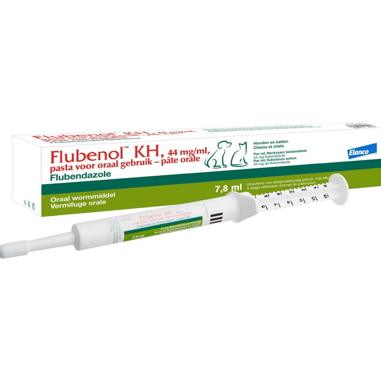Flubenol KH Pasta is een smakelijke ontwormingspasta voor honden en katten op basis van flubendazol. Flubenol KH Pasta bestrijdt onder andere spoelwormen, lintwormen, haakwormen en zweepwormen. Deze ontwormingspasta is geschikt voor alle leeftijden. Het behandelen van wormen is erg belangrijk bij honden en katten. Naast dat wormen voor vervelende klachten kunnen zorgen bij honden en katten, kunnen wormen ook besmettelijk zijn voor mensen. Met name jonge kinderen worden vaak besmet door huisdieren, omdat ze wormeitjes binnenkrijgen tijdens het buitenspelen. Deze wormpasta is super smakelijk, waardoor het makkelijk toegediend kan worden.