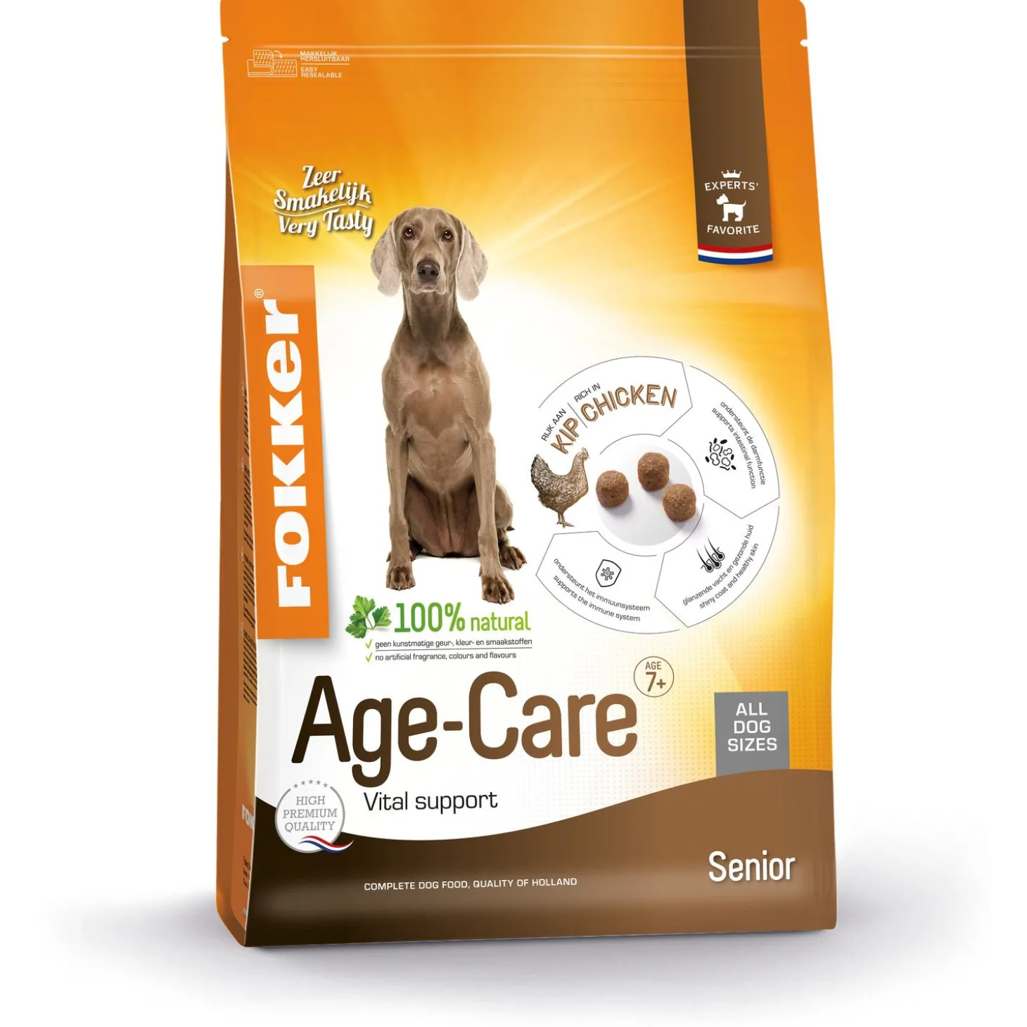 Wanneer een hond ouder wordt, krijgt hij andere voedingsbehoeften. Met een brok die is afgestemd op deze behoeften kan je hond gezond oud worden. Age-Care van Fokker is een high premium brokvoeding geschikt voor oudere honden vanaf 7 à 9 jaar oud.