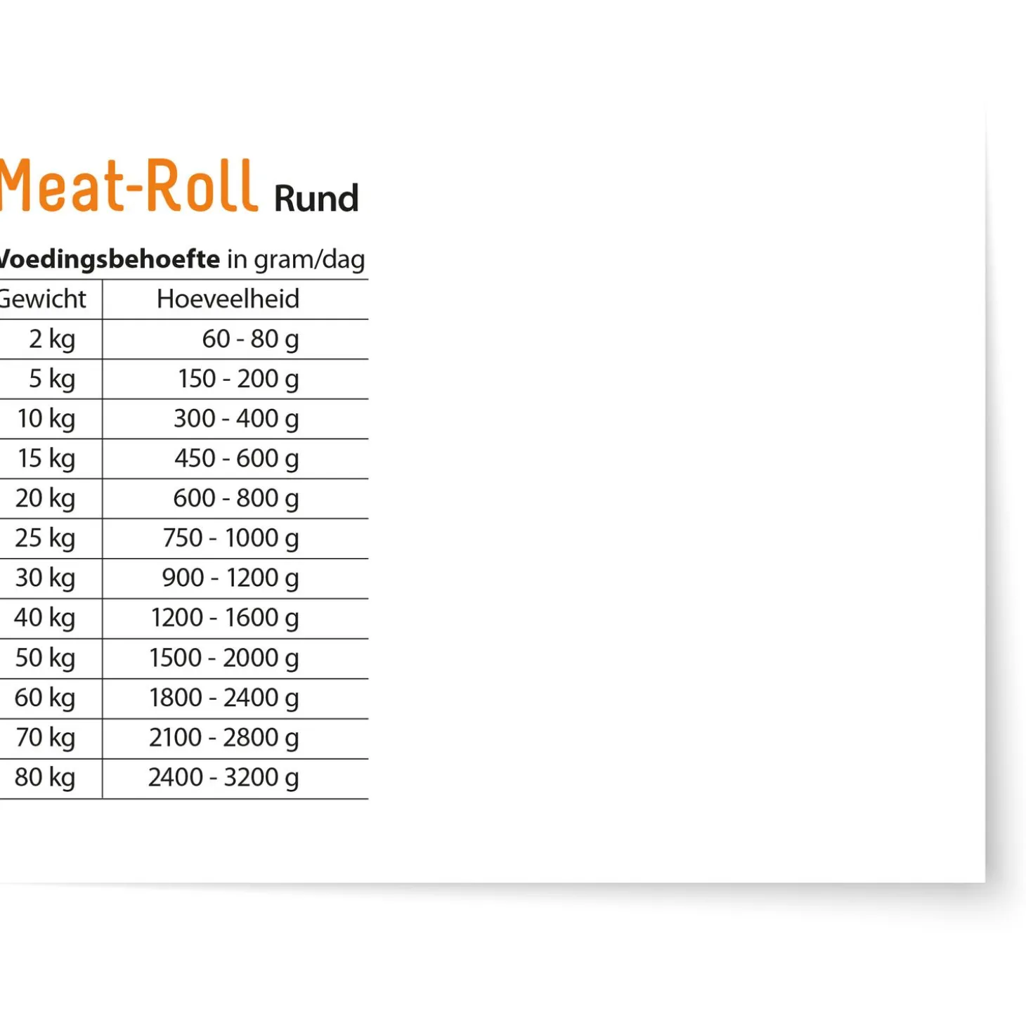 | Aanbeveling | Serveren op kamertemperatuur. Hoeveelheid voeding: 30-40 gr. per kg. Lichaamsgewicht |