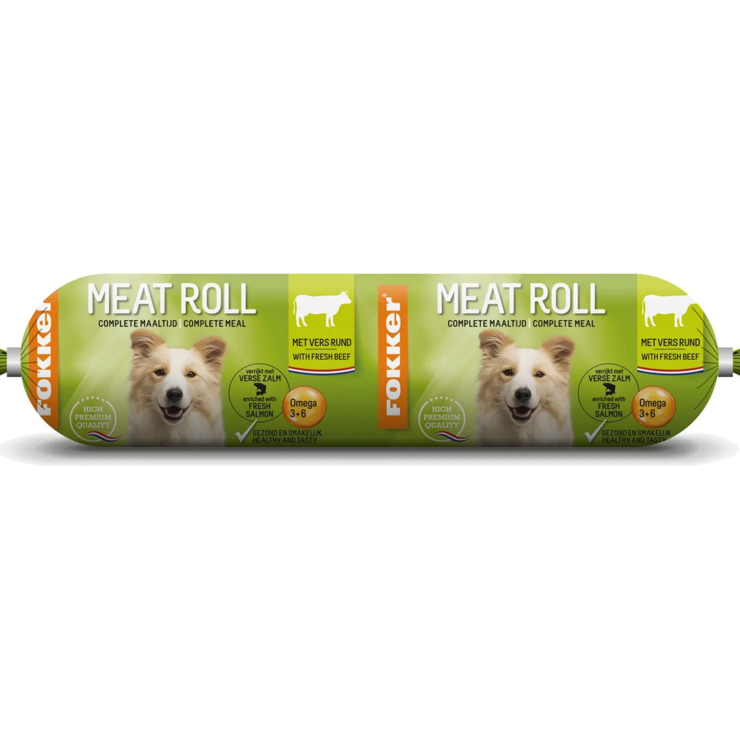 Vleesvoedingen die buiten de koelkast houdbaar zijn, zijn ideaal als volledige maaltijd, aanvulling op de brok of als tussendoortje voor tijdens het trainen. Meat Roll Rund van Fokker is een complete maaltijd op basis van rund.