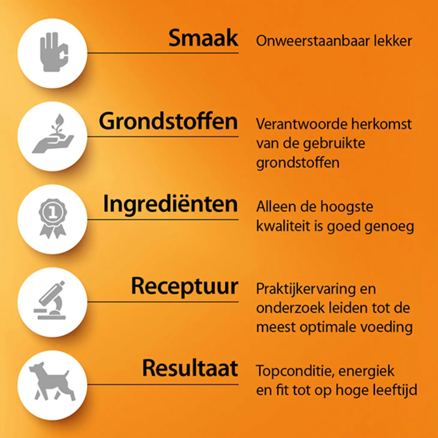 - Voor minder actieve honden en honden met (de neiging tot) overgewicht.