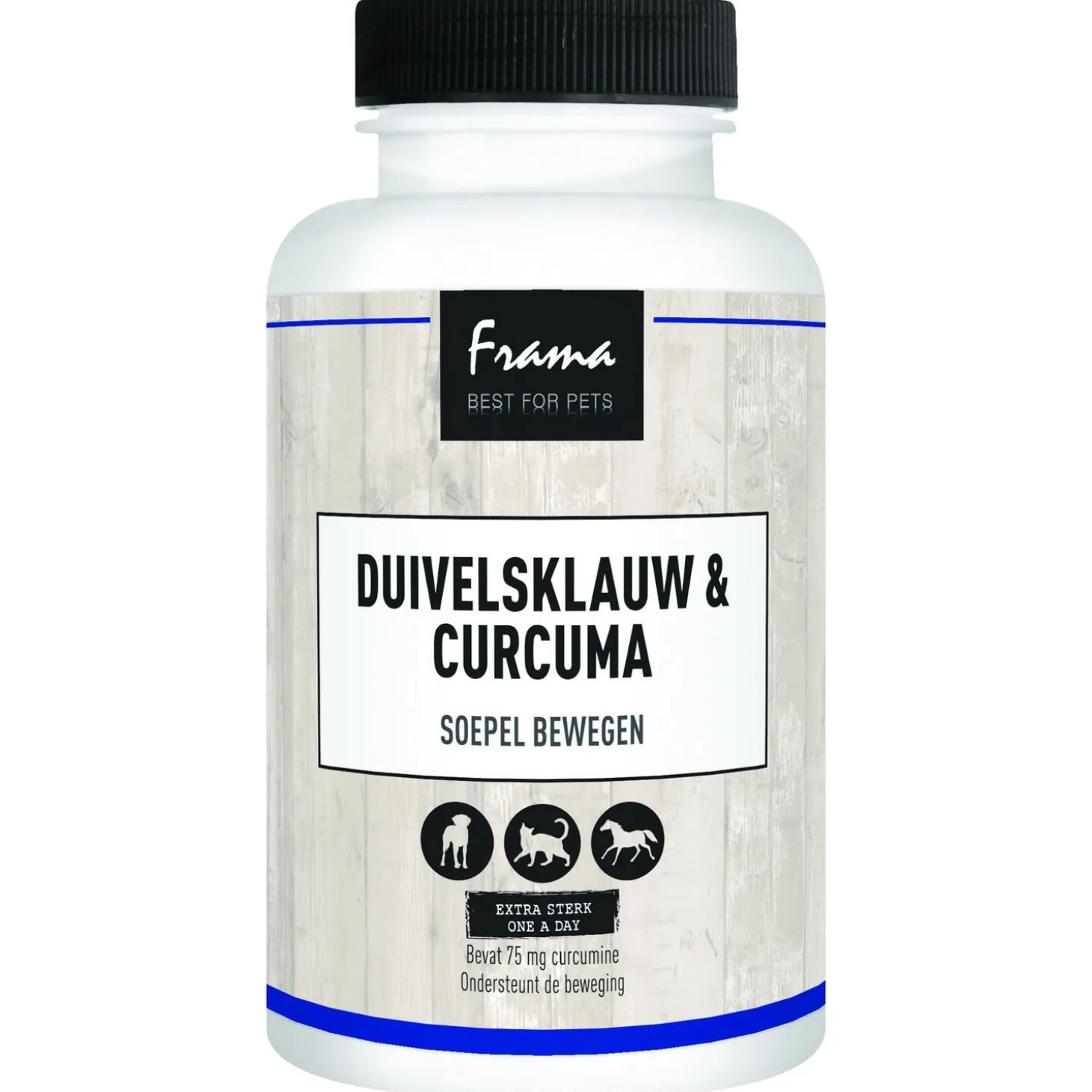 Frama Duivelsklauw & Curcuma biedt een krachtige combinatie van twee van de meest effectieve en veelzijdige plantaardige ingrediënten: Kurkuma (Curcuma longa) en Duivelsklauw (Harpagophytum). Kurkuma staat bekend als een van de belangrijkste geneeskrachtige planten vanwege zijn diverse gezondheidsvoordelen. Onderzoeksresultaten wijzen op de voordelen van kurkuma voor de behandeling van verschillende aandoeningen, waaronder longziekten, darmziekten en leverziekten. Deze veelzijdige plant heeft ook ontstekingsremmende eigenschappen en kan helpen bij het ondersteunen van het immuunsysteem. Aan de andere kant is Duivelsklauw, ook wel bekend als Harpagophytum, een krachtige plantaardige pijnstiller die snel werkt en daarom zowel bij incidentele als chronische pijn kan worden ingezet. Deze unieke combinatie van Duivelsklauw en Curcuma-extract zorgt voor zowel korte als lange termijn positieve effecten op het welzijn van jouw huisdier, en kan helpen bij het verminderen van stijfheid.