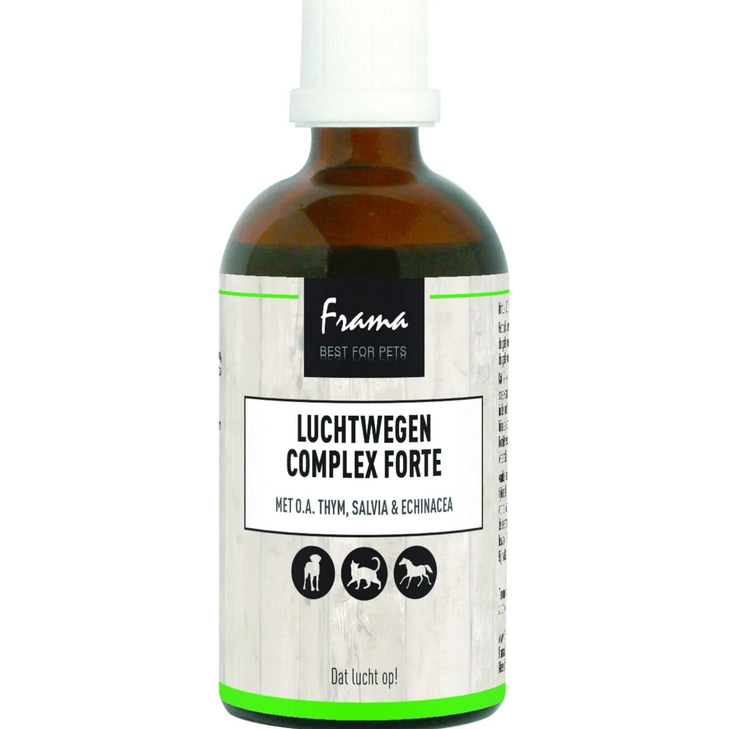 Frama Luchtwegendruppels bieden effectieve ondersteuning voor de luchtwegen van huisdieren, dankzij de krachtige formule van natuurlijke ingrediënten die speciaal zijn ontworpen om diverse luchtwegaandoeningen te verlichten. Deze druppels bevatten een uitgebalanceerde mix van alantwortel, echte tijm, hondsdraf, venkel en zonnedauw, die samenwerken om verschillende symptomen en indicaties van luchtwegaandoeningen aan te pakken. Of het nu gaat om chronische bronchitisachtige hoest, krampachtig hoesten, infecties of overmatige slijmproductie, Frama Luchtwegendruppels bieden een doeltreffende oplossing voor diverse luchtwegproblemen bij huisdieren.Met Frama Luchtwegendruppels kun je jouw huisdier verlichting bieden en hun ademhaling ondersteunen, zodat ze weer vrij en comfortabel kunnen ademen.