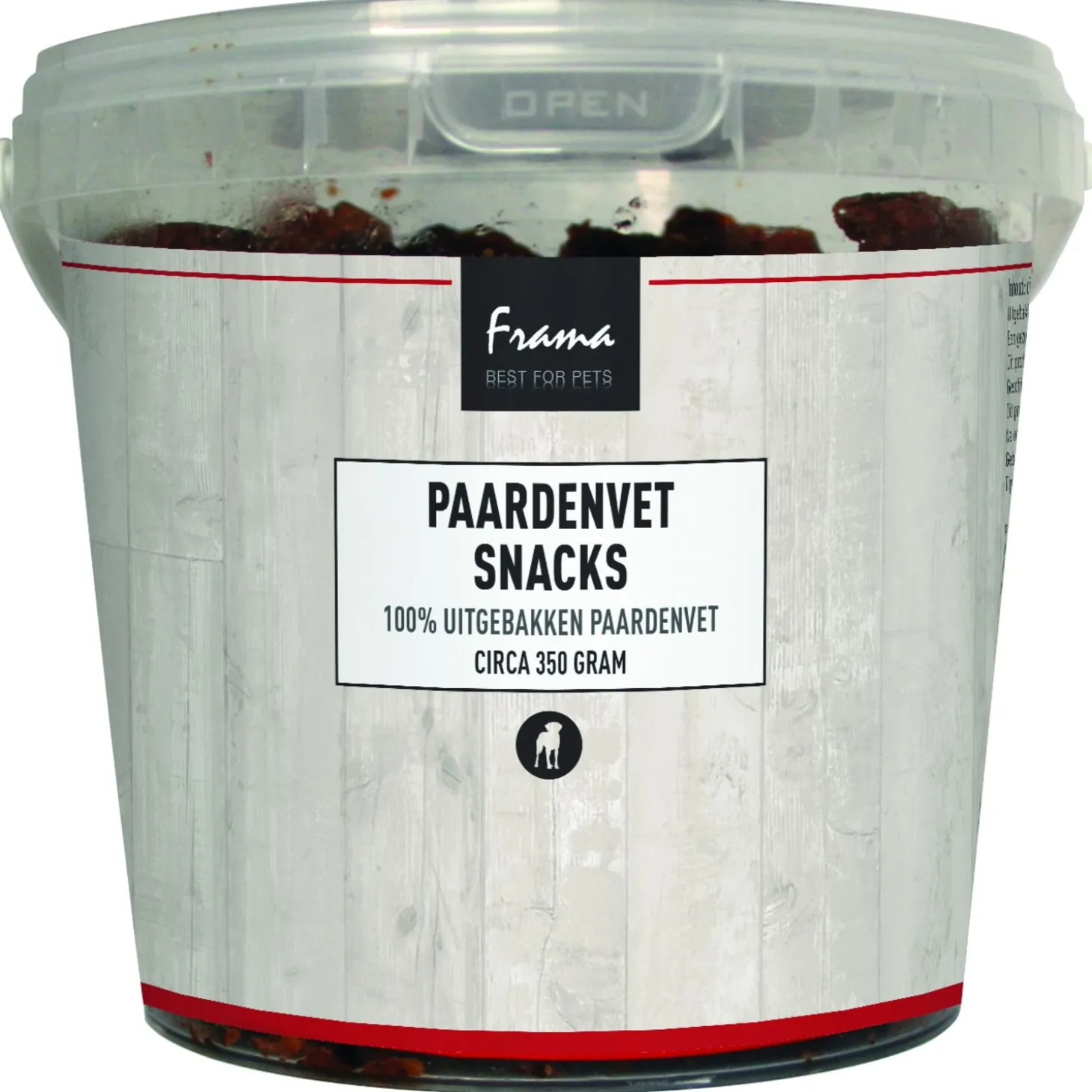 Op zoek naar een heerlijke en gezonde snack voor je trouwe viervoeter? Frama Paardenvet Snacks zijn de perfecte keuze! Gemaakt van 100% natuurlijk uitgebakken paardenvet, bieden deze snacks een scala aan voordelen voor de gezondheid en het welzijn van je hond. Frama Paardenvet Snacks zijn niet alleen een smakelijke traktatie, maar dragen ook bij aan een gezonde huid, een glanzende vacht, een betere darmflora, een sterkere weerstand, een optimale gezondheid en sterkere botten. De rijke samenstelling, met glycerine en vitaminen A en D, is perfect voor honden van alle rassen en helpt bij het behoud van een optimale conditie.