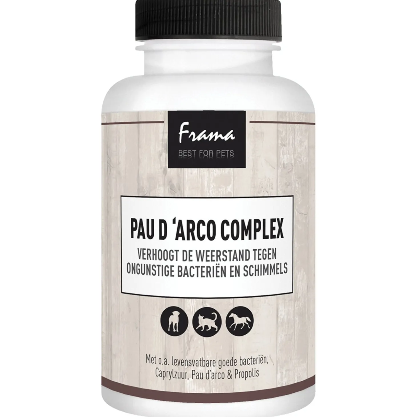 Frama Pau D’arco Complex biedt een uitgebreide ondersteuning voor het immuunsysteem van je huisdier door de weerstand tegen ongunstige bacteriën en schimmels te verhogen. Deze unieke formule is samengesteld met het oog op het bevorderen van de algehele gezondheid en het welzijn van jouw trouwe metgezel. Met een breed scala aan gunstige eigenschappen, is dit supplement een krachtige bondgenoot in de strijd tegen diverse gezondheidsproblemen.Bovendien fungeert het als een krachtige antioxidant en helpt het bij het bestrijden van allergieën. Met zijn sterke stimulans op het immuunsysteem is het bijzonder effectief bij huidinfecties en darmstoornissen. Verrijkt met levensvatbare goede bacteriën en zink, biedt het ook een aanvullende ondersteuning voor het immuunsysteem. Met toevoeging van krachtige kruiden zoals Artemisia en berberine (kurkboom), is Pau D’arco Complex een complete, natuurlijke oplossing voor de gezondheid van jouw huisdier.