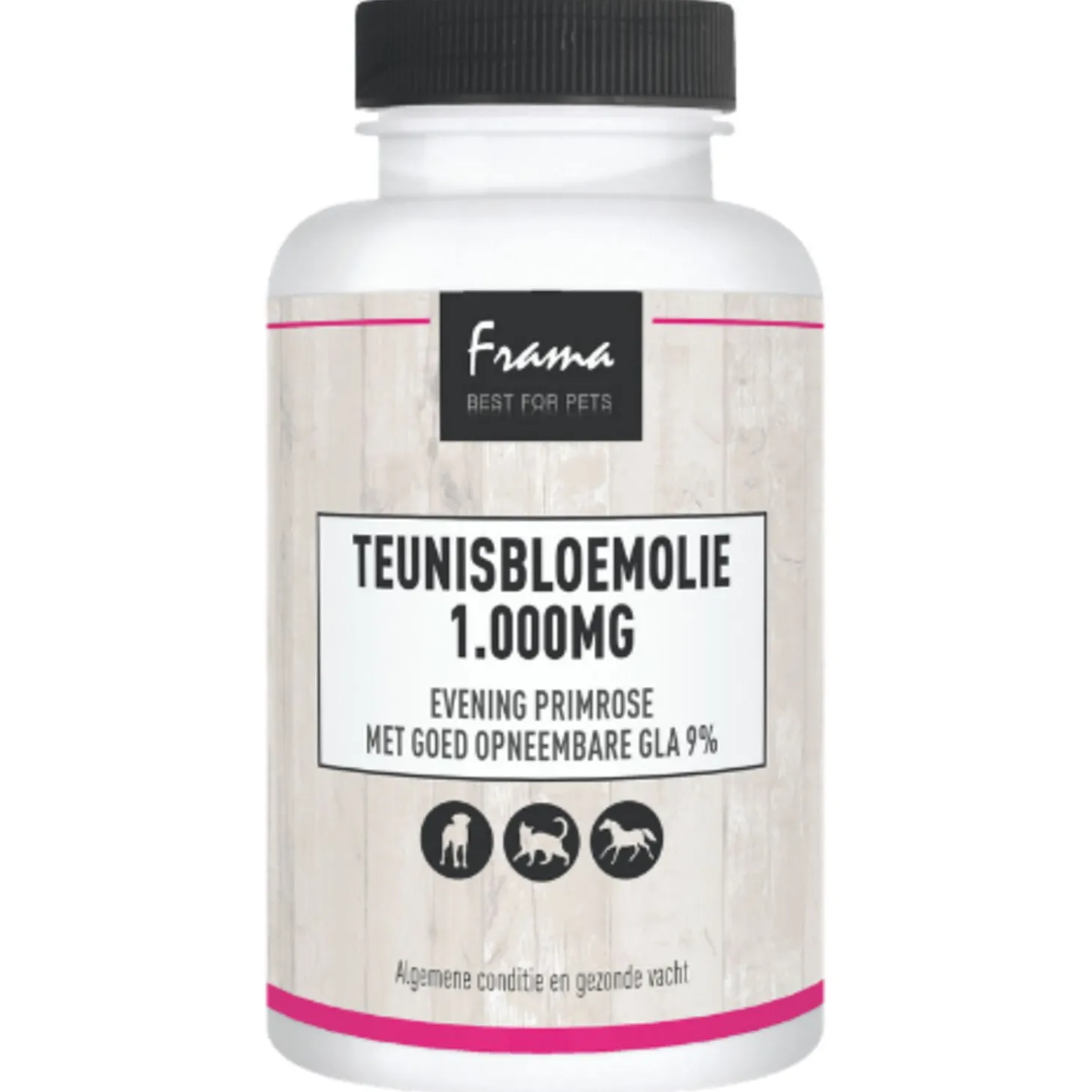 Frama Best for Pets Teunisbloemolie 1.000mg biedt een hoogwaardige bron van zuivere teunisbloemolie verrijkt met GLA, waarbij kwaliteit voorop staat, want het is “human-grade”. Deze unieke formule is ontworpen om een scala aan huidproblemen aan te pakken, variërend van irritatie, jeuk en schilfers tot andere dermatologische aandoeningen die huisdieren kunnen ervaren. Met zijn doeltreffende werking is deze Teunisbloemolie een waardevolle toevoeging aan de verzorging van je huisdier. De diepgaande voordelen van Frama’s Teunisbloemolie reiken verder dan alleen oppervlakkige huidverzorging. Het ondersteunt ook een gezonde en glanzende vacht, waardoor je huisdier niet alleen van binnen, maar ook van buiten straalt.Met zijn brede toepasbaarheid is deze Teunisbloemolie een onmisbaar onderdeel van het welzijn van je geliefde huisdier.