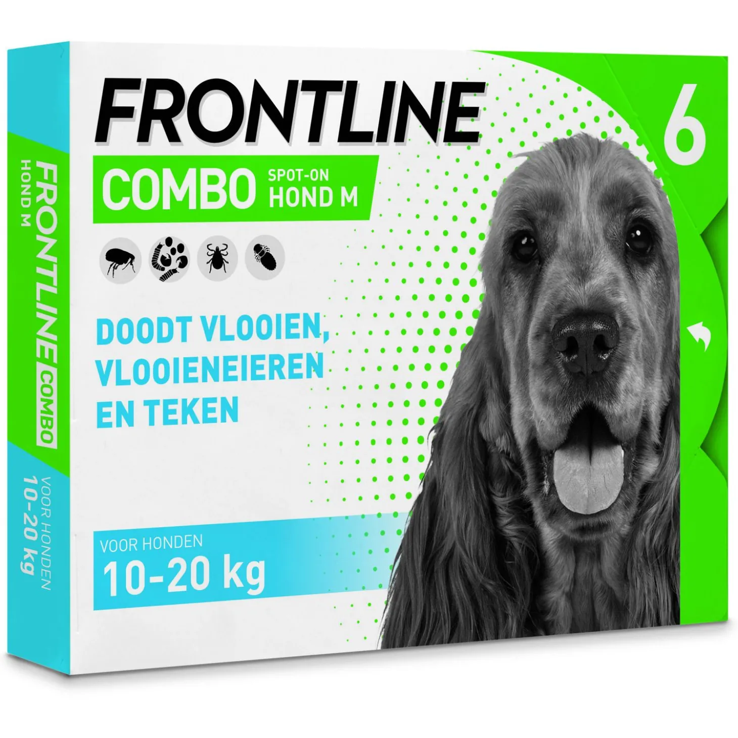 Het hele jaar door kan je hond geteisterd worden door vlooien en teken. Door gebruik te maken van Frontline Combo Medium bied je je dier een zeer complete bescherming. Frontline Combo heeft een dubbele werking. Het bestrijdt volwassen vlooien en teken én is werkzaam tegen de eieren en larven van vlooien. Zo kunnen nieuwe vlooien zich niet ontwikkelen en vermindert de besmettingsdruk in de leefomgeving van je hond.