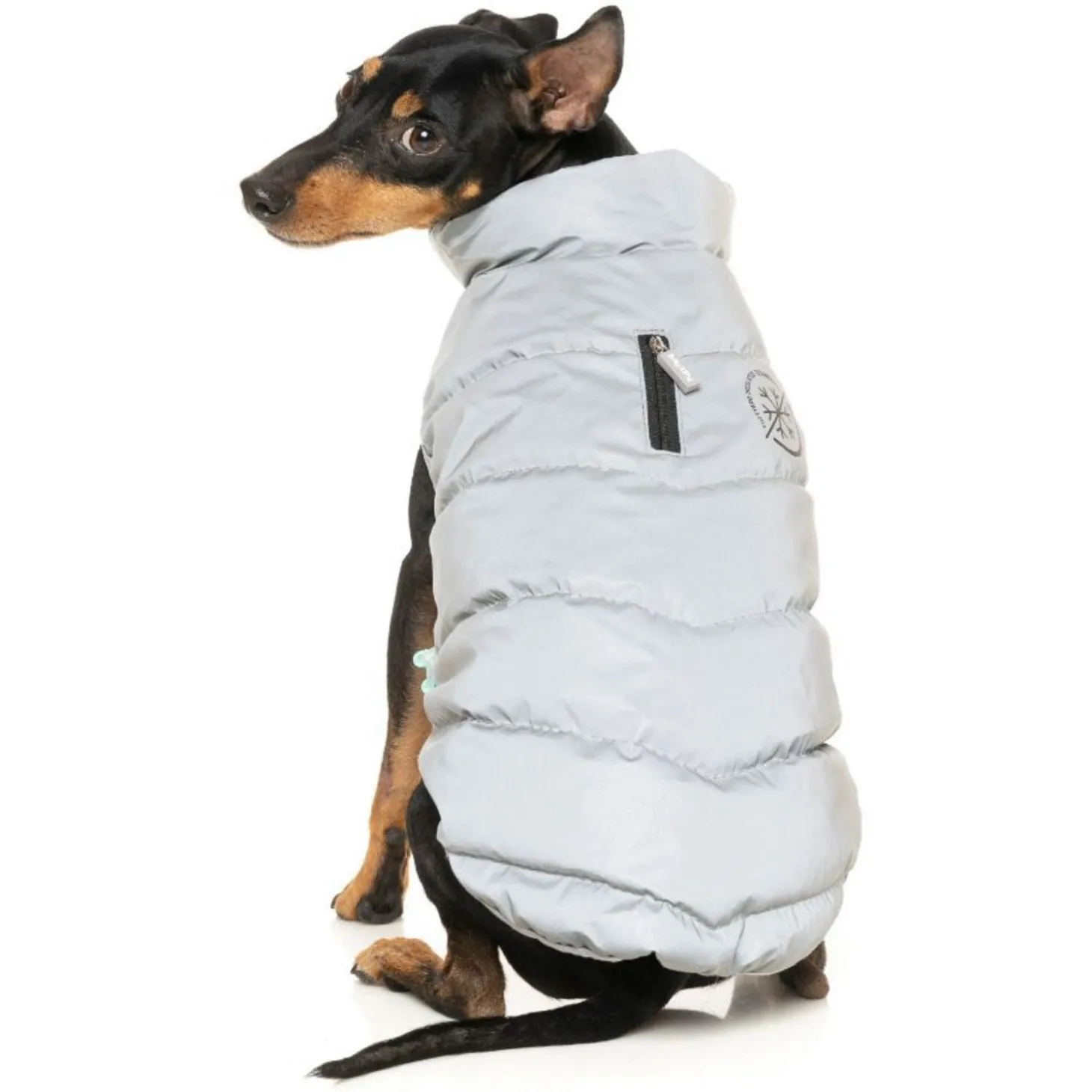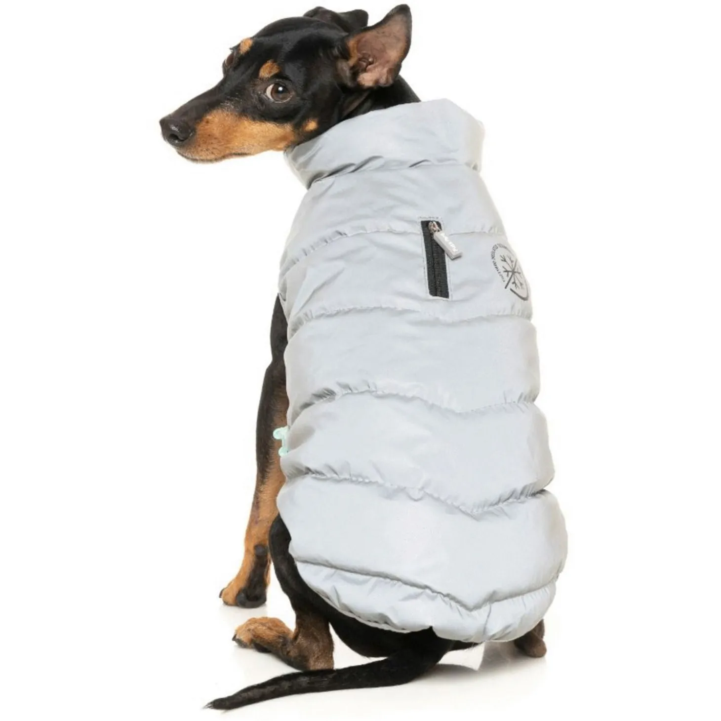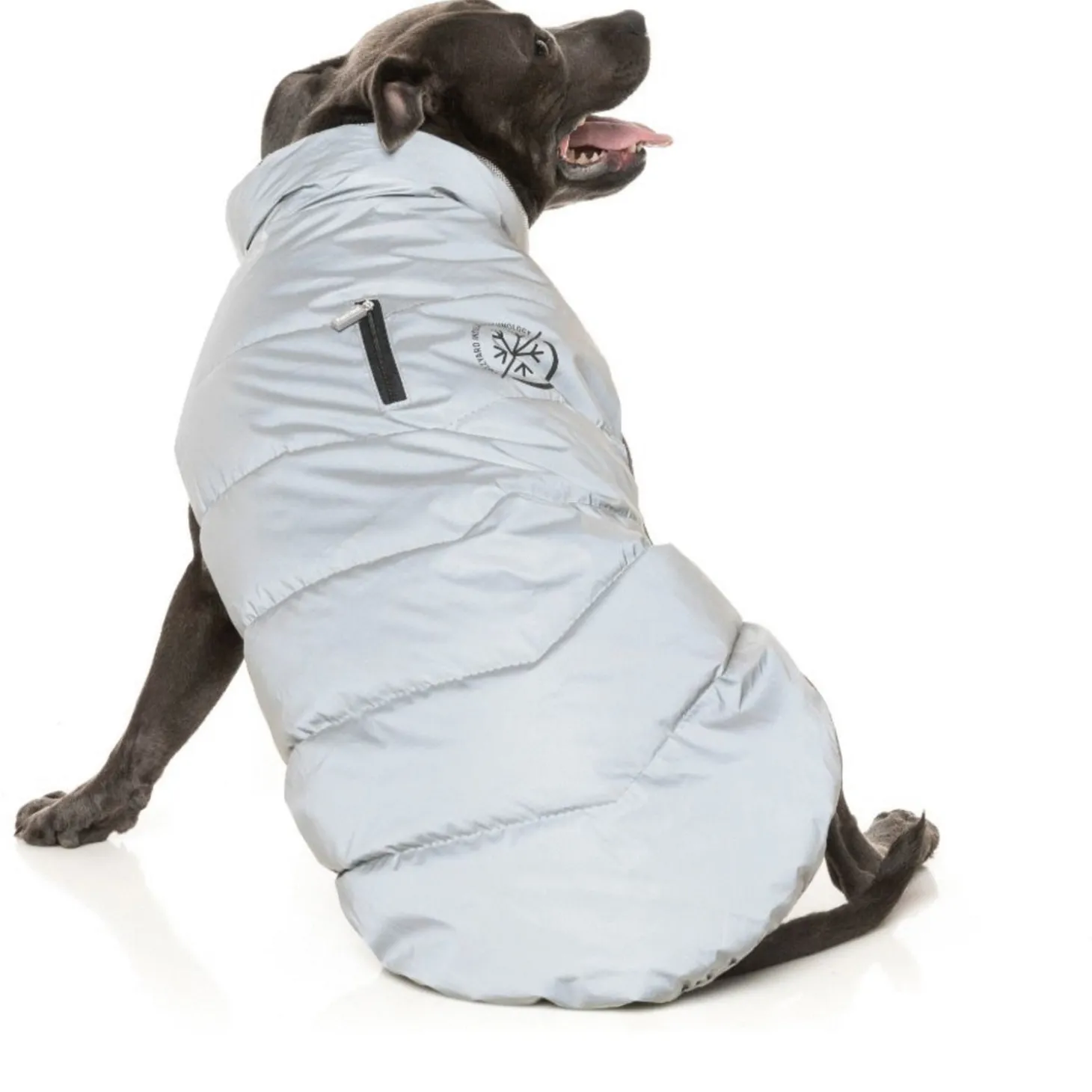 De jas is makkelijk aan te trekken met de klittenbandsluiting op de borst en dankzij de geïsoleerde lichtgewicht vulling blijft je hond lekker warm. Op de rug zit een kleine ritssluiting waardoor je je looplijn kan vastmaken aan een eventueel tuig onder de jacket. De jas is verkrijgbaar in 7 maten. In de keuzeselectie wordt uitgegaan van de ruglengte.