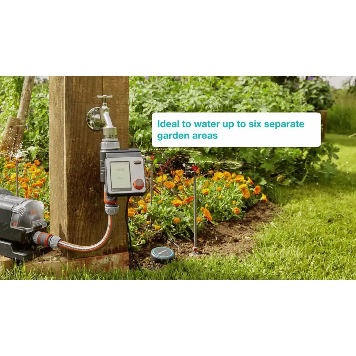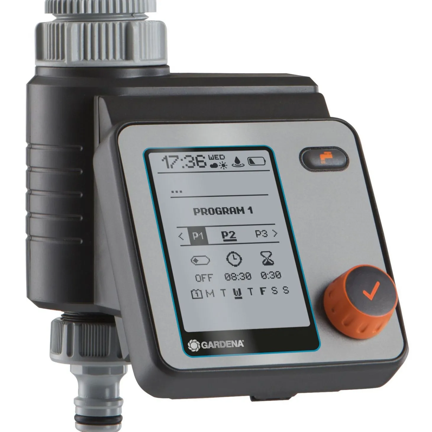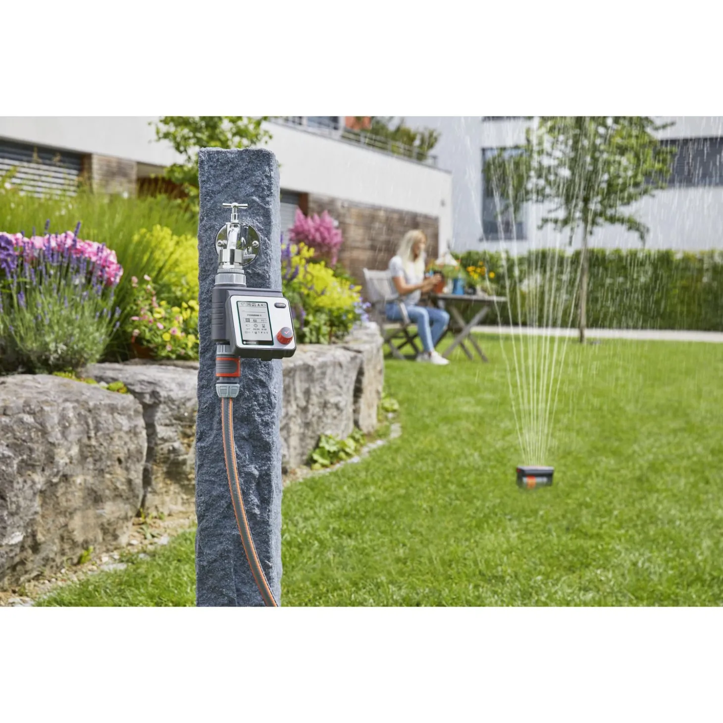 Het display van de computer is makkelijk leesbaar en toont je alle instellingen in 1 oogopslag. Het menu kan in 10 talen worden ingesteld. Het bedieningspaneel is tevens weerbestendig en kan worden verwijderd. Je kan ook eenvoudig de besproeiingsduur centraal aanpassen of alle besproeiingen direct stopzetten bij slecht weer. Indien wenselijk kan je de Master combineren met de Gardena Waterverdeler of Bodemvochtigheidssensor.