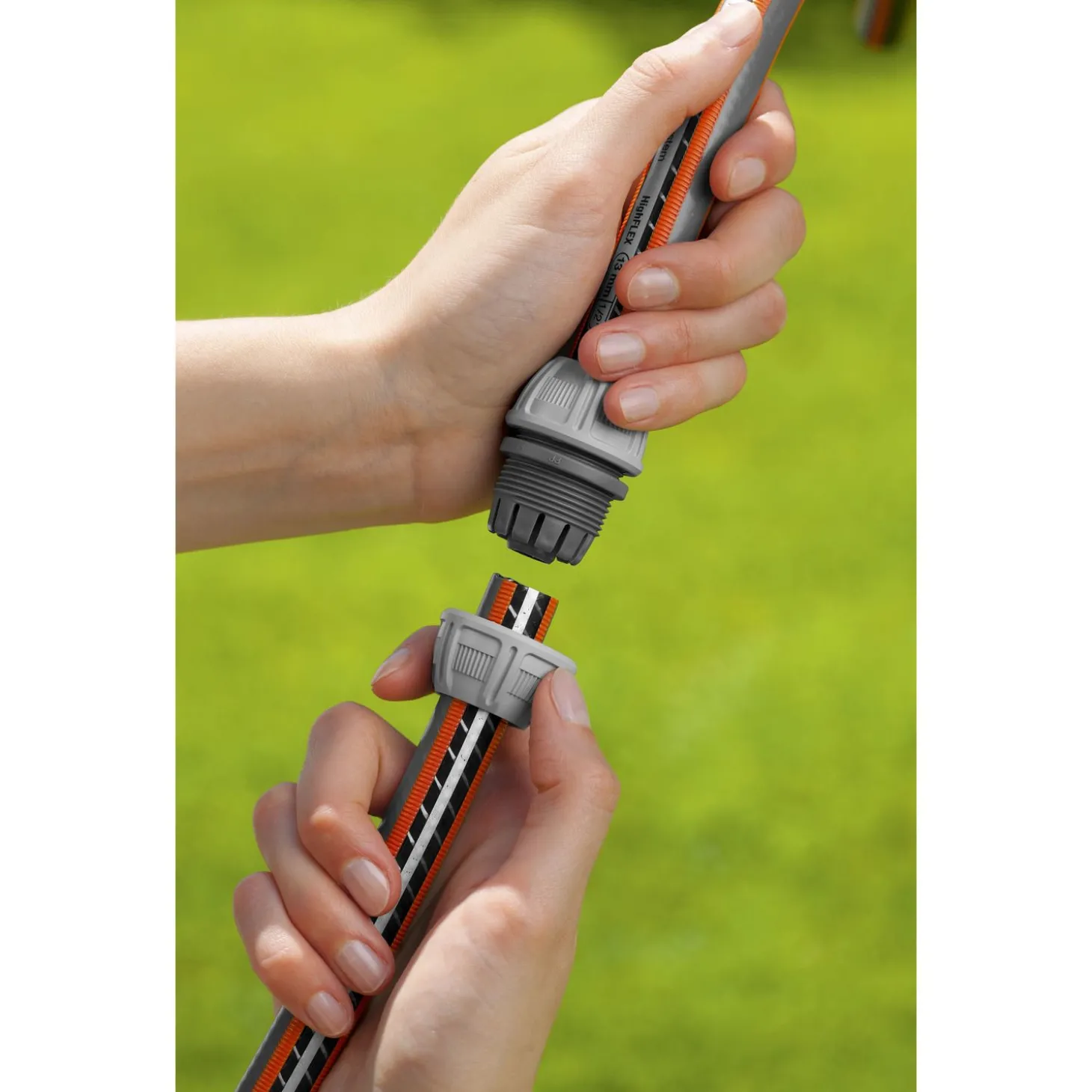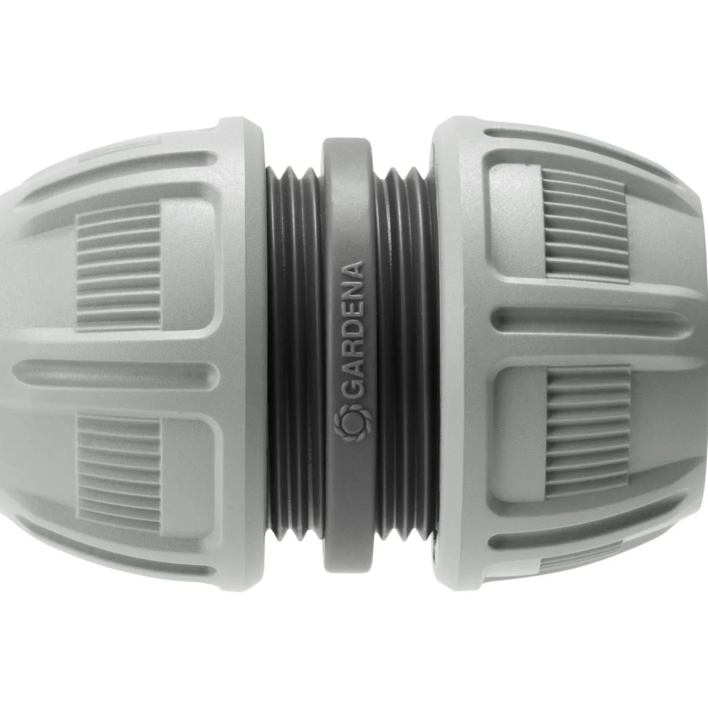 Een kapotte slang hoef je niet gelijk weg te gooien, met de Reparateur van Gardena kan je snel en eenvoudig je slang repareren zónder gereedschap. Snijd simpelweg het beschadigde deel uit je slang en verbind de twee slangdelen met de reparateur. De speciaal gevormde wartelmoer zal zorgen voor een sterke verbinding. De reparateur is geschikt voor 13 mm (1/2”) en 15 mm (5/8”) slangen.