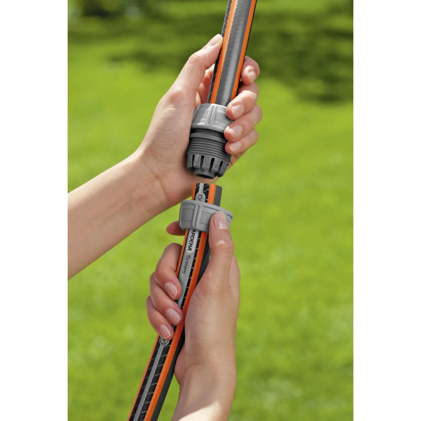 Een kapotte slang hoef je niet gelijk weg te gooien, met de Reparateur van Gardena kan je snel en eenvoudig je slang repareren zónder gereedschap. Snijd simpelweg het beschadigde deel uit je slang en verbind de twee slangdelen met de reparateur. De speciaal gevormde wartelmoer zal zorgen voor een sterke verbinding. De reparateur is geschikt voor 19 mm (3/4”) slangen.