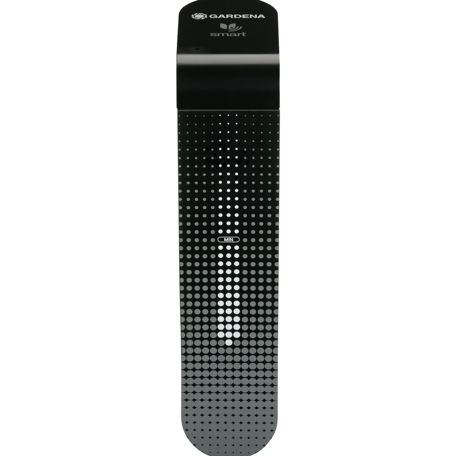 Dankzij de platte bovenkant kan de sensor ook midden in een gazon worden gestoken waar overheen wordt gemaaid. Het apparaat werkt op 2 AA-batterijen (niet inbegrepen). De actuele meetgegevens worden via radiosignalen naar de Smart Gateway gestuurd, die het vervolgens naar de app verzendt. De Smart Gateway is in alle Gardena Smart System Start Sets opgenomen (niet inbegrepen bij dit product).