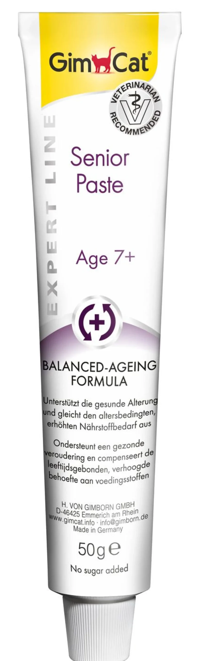 Soms kan je kat wel een steuntje in de rug gebruiken, vooral als hij ouder wordt. Met de Senior Paste van GimCat voorzie je je senior kat – vanaf 7 jaar oud – met een unieke receptuur die zorgt voor een gezond en sterk lichaam: