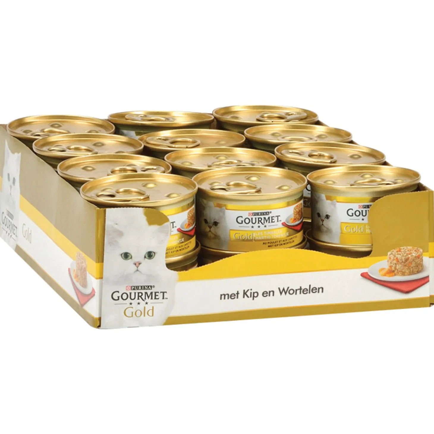 Het Gourmet Golden Hartig Torentje bevat 24 blikjes van elks 85 gram. In de Pets Place winkel zijn de blikjes per stuk te koop.
