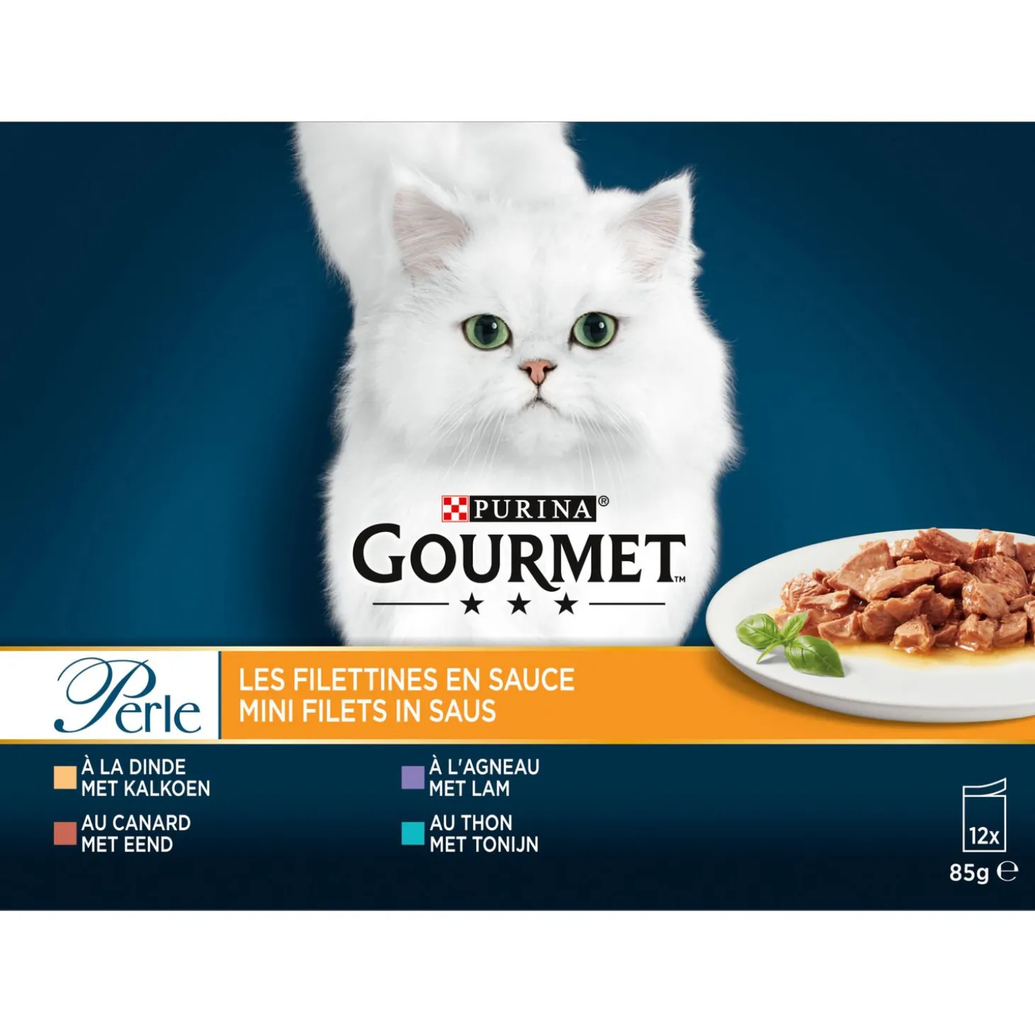 De Gourmet Perle Mini Filets in Saus bevat 12 maaltijdzakjes van elks 85 gram.