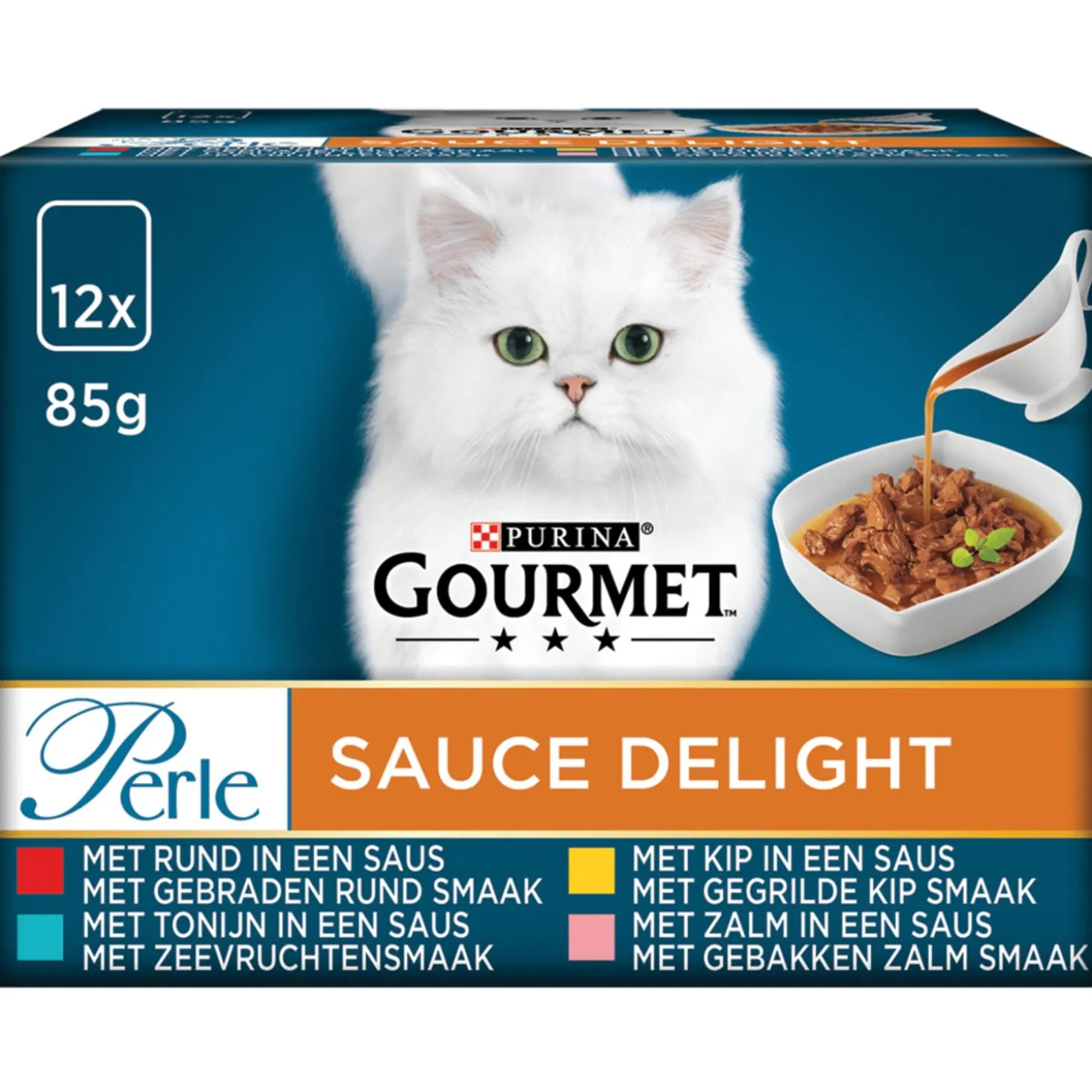 Katten hebben een verfijnde smaak en zijn zeer kieskeurig in wat ze lekker vinden. Maar bijna elke kat zal met zekerheid smullen van de Gourmet Perle Sauce Delight. Het natvoer bestaat uit een gulle portie smakelijk saus met daarin heerlijke fijne mini filets. De Perle mix bevat 4 verschillende smaken – rund, kip, tonijn, zalm – zodat je je kat elke dag weer kunt verwennen met een unieke smaakbeleving.