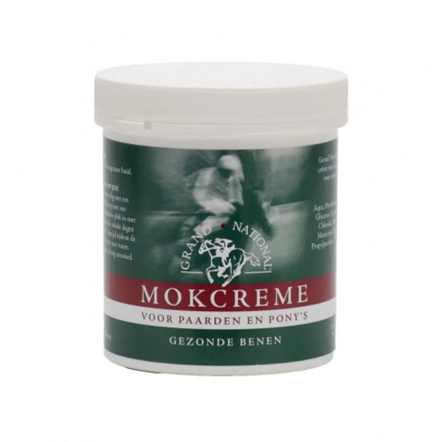 Mok is een vervelende aandoening (huidontsteking) bij paarden, het kan door factoren van zowel buitenaf als binnenuit worden veroorzaakt. Mok komt vooral voor in de kootholte. De Mokcrème van Grand National is geschikt om bij alle soorten van mok te gebruiken. De 8 hoogwaardige ingrediënten zorgen voor een uitstekende verzorgende werking en zullen de door mok aangetaste huid behandelen en verzorgen. De crème zit in een handige pot.