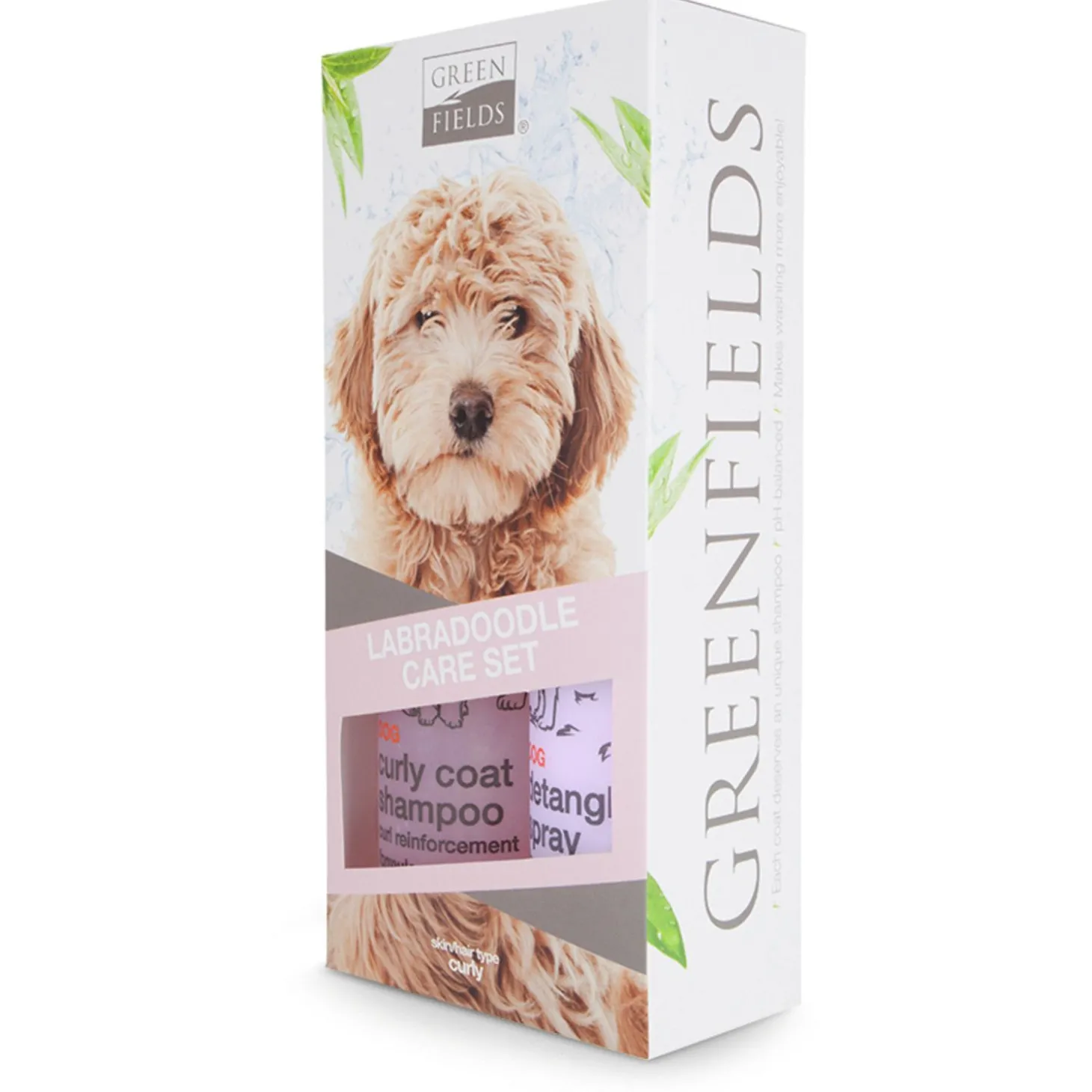 Labradoodles hebben een andere vachtverzorging nodig dan kortharige honden. De Greenfields Labradoodle Care Set bevat alles wat je nodig hebt om jouw doodle weer fris en fruitig te laten ruiken! De set bevat de Curly Coat Shampoo en de Detangler spray.