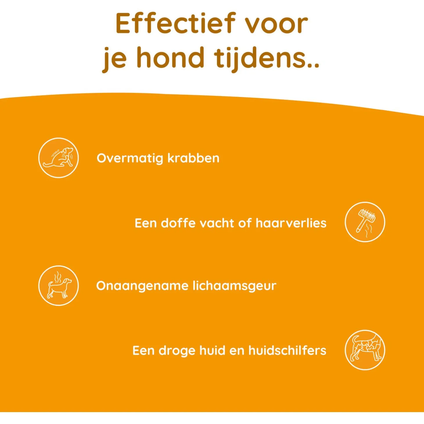 - Ondersteunt bij klachten zoals jeuk, droge huid, hotspots, haaruitval of een doffevacht