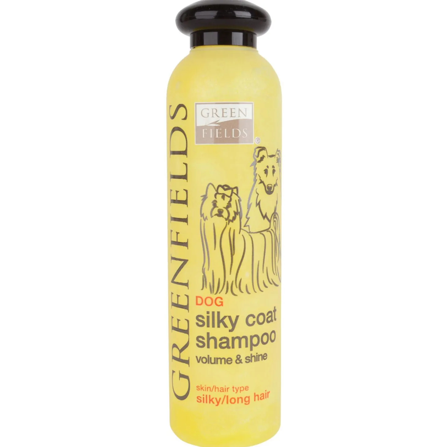 De Silky Coat Shampoo van Greenfields is speciaal samengesteld voor langharige honden. De shampoo bevat zijde proteïne, wat helpt de vacht te versterken aan de binnenkant en brengt de natuurlijke glans terug aan de buitenkant.