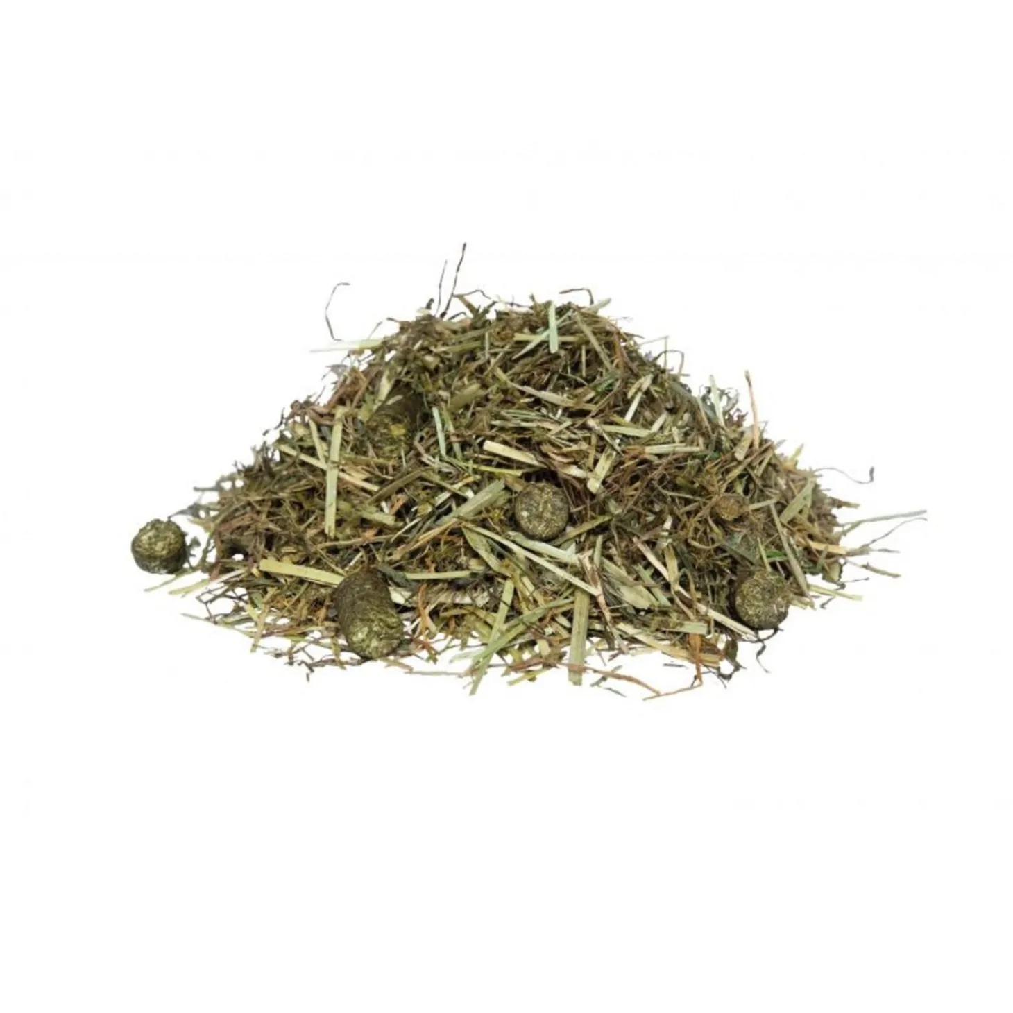 - Zachte, vezelrijke ruwvoermix van grassen voor een langzamere opname en meer kauwbewegingen