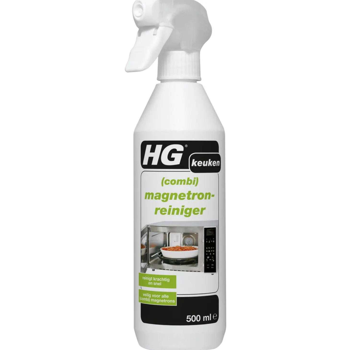 | Aanbeveling | Spray het te reinigen oppervlak in met HG combi magnetron reiniger en laat het enige seconden inweken. Neem daarna het oppervlak af met keukenpapier. Hierna de magnetron afnemen met een schone en vochtige vaatdoek. Bewaarrichtlijn: Attentie: Fles rechtop vervoeren en bewaren. |