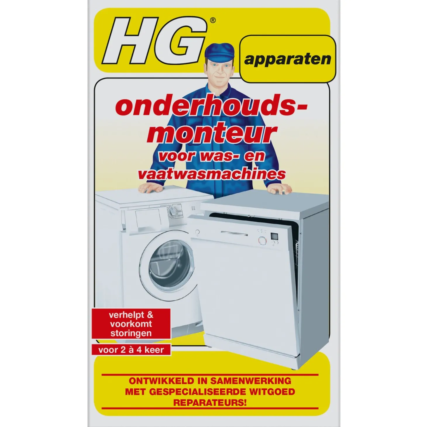 | Aanbeveling | Zorg dat de was- of vaatwasmachine leeg is en vul het zeepbakje van de vaatwasmachine tot aan het bovenste streepje met HG onderhoudsmonteur. Stel het programma in op de hoogst mogelijke temperatuur. Start direct het gehele programma en laat deze zonder onderbreking doorlopen. Bij wasmachines dient het hoofdwasmiddelenbakje of de machine zelf met één volledig flesje HG onderhoudsmonteur gevuld te worden. Voeg geen extra wasmiddel toe. Stel het programma in op de stand voor de bonte was. Zet daarna de wasmachine aan en laat ook deze geheel en zonder onderbreking, inclusief centrifugeren, uitdraaien. Bewaarrichtlijn: Geen |