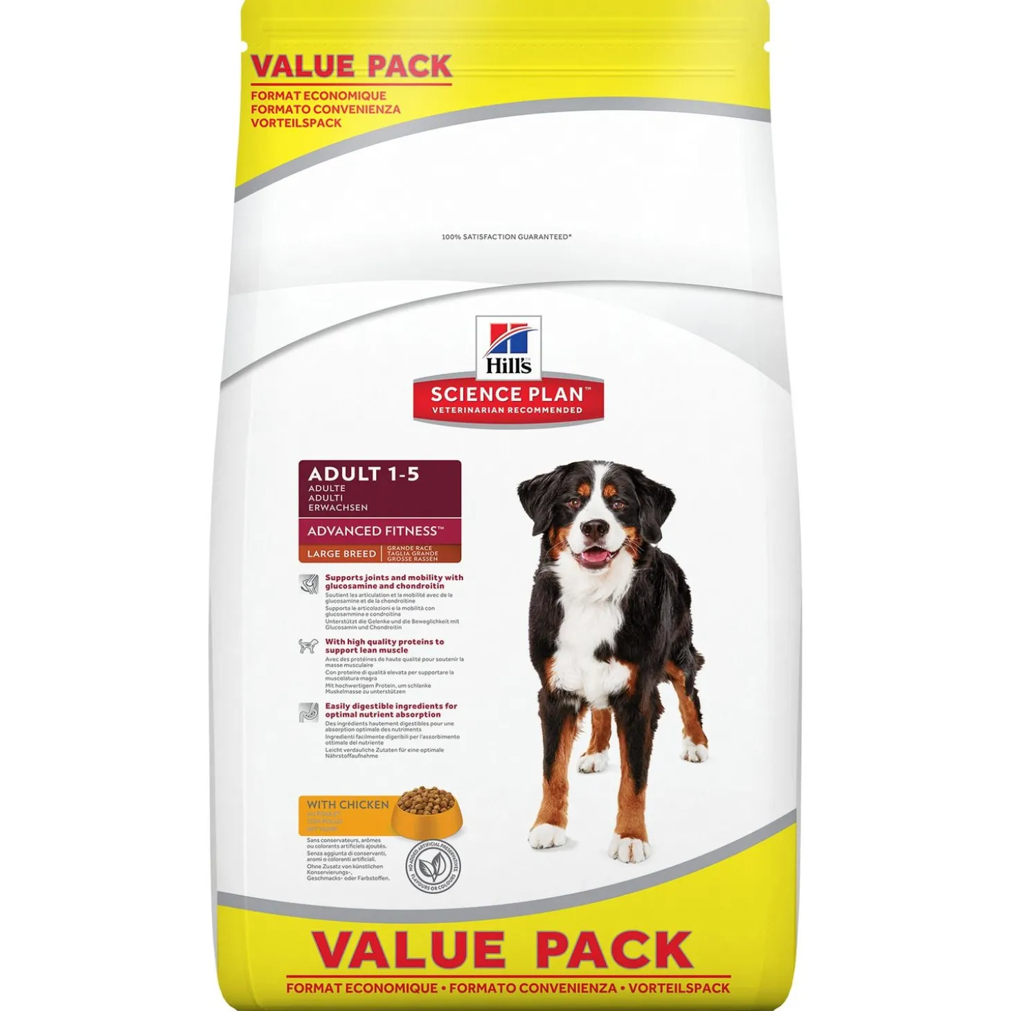 Deze voeding is geschikt als dagelijkse voeding voor volwassen honden van grote rassen van 1 tot 5 jaar oud. Gebruik deze voeding niet bij puppy’s, drachtige of zogende teven of honden ouder dan 6 jaar.
