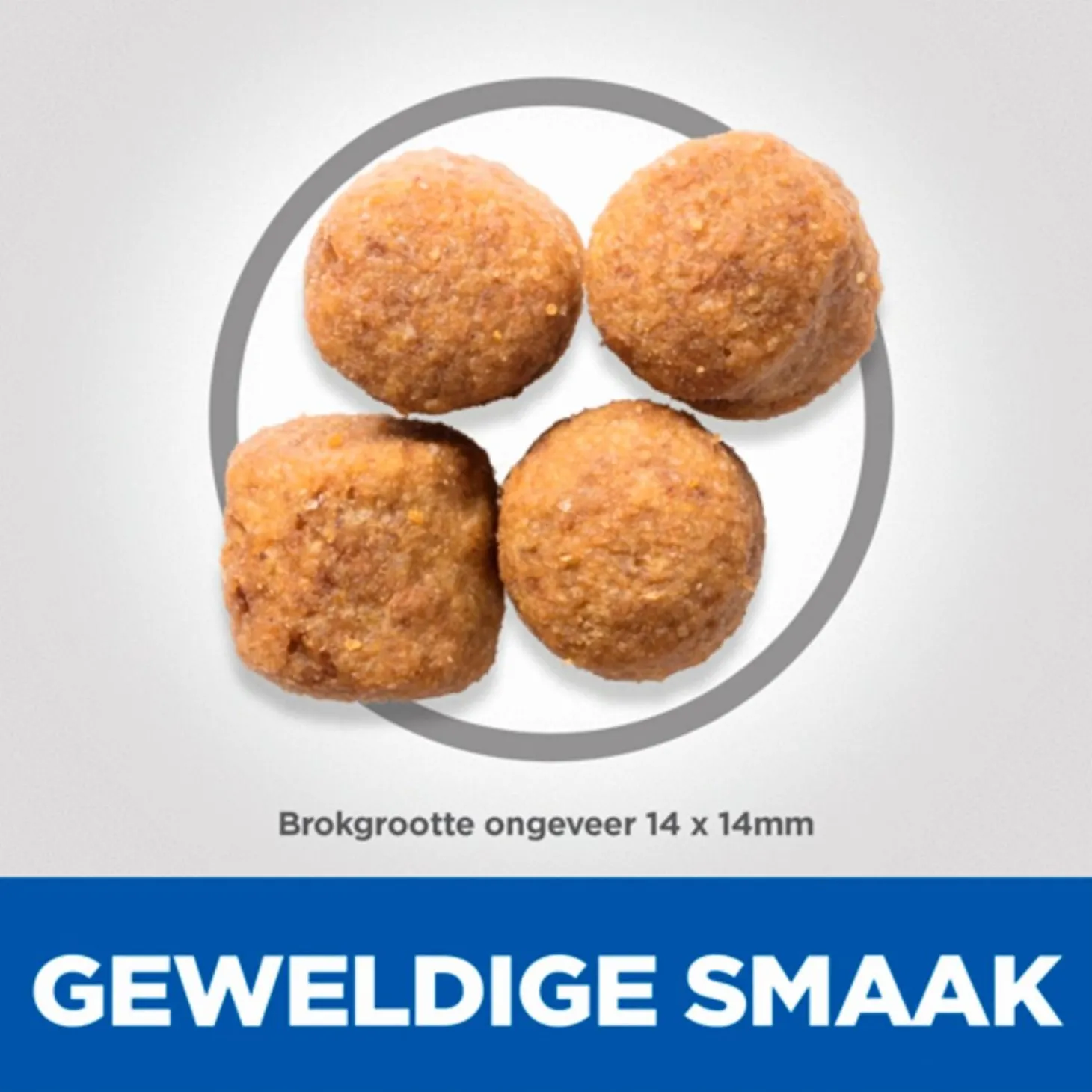 - Pas de hoeveelheid brokjes aan om het ideale gewicht te behouden, indien nodig in overleg met een dierenarts
