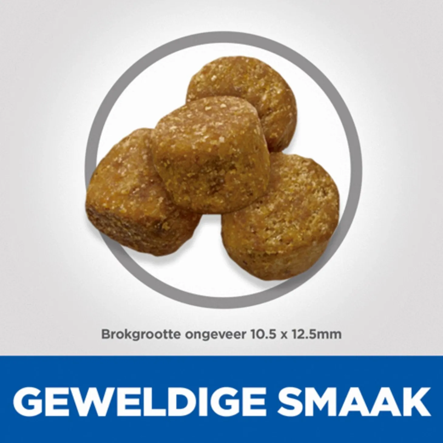 - Pas de hoeveelheid brokjes aan om het ideale gewicht te behouden, indien nodig in overleg met een dierenarts