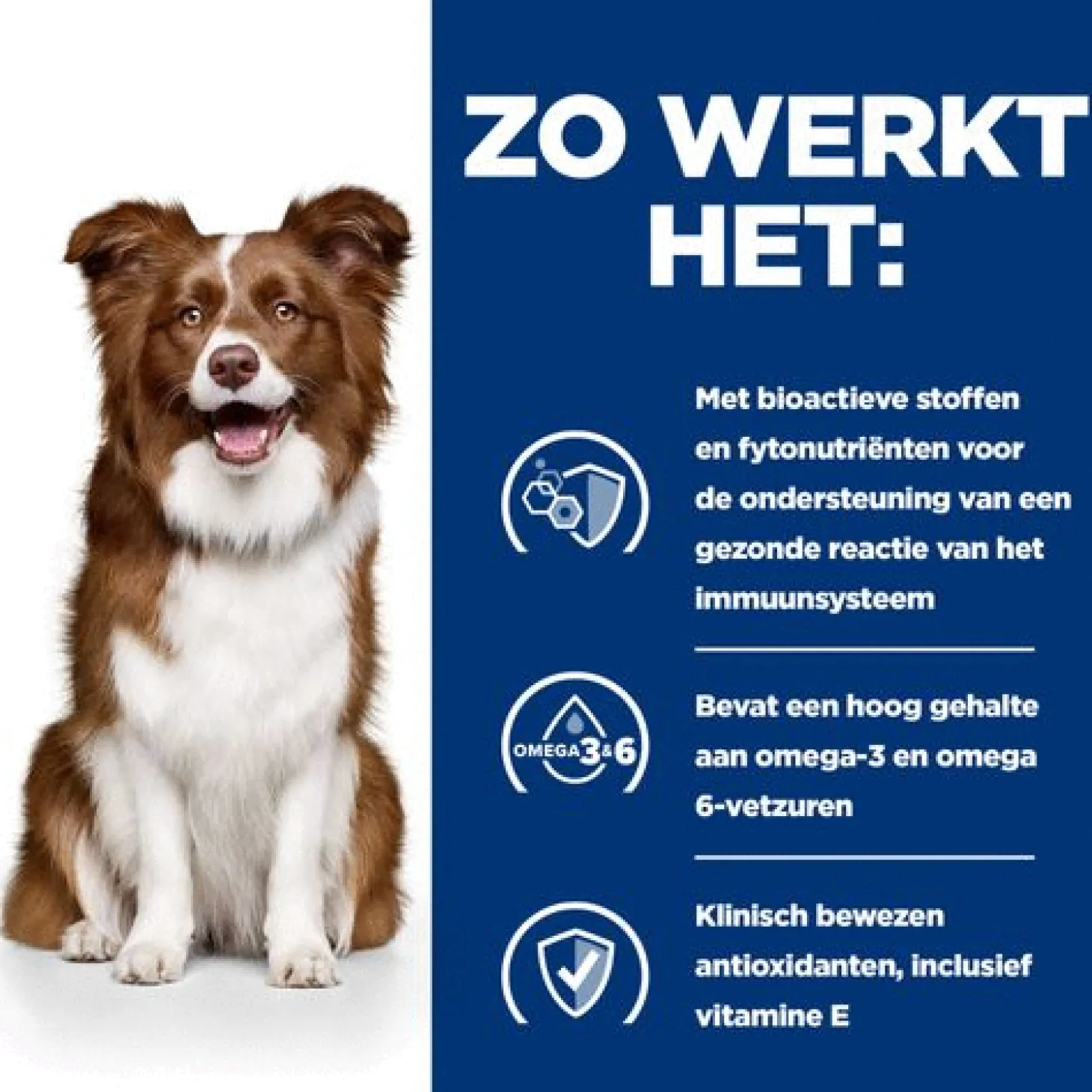 Problemen met de huid en vacht bij de hond kunnen erg vervelend zijn. Gelukkig is er Hill’s Prescription Diet Derm Defense hondenvoer. Een wetenschappelijk samengestelde voeding met kip die helpt een gezonde huid te ondersteunen en de huidbarrière beschermt tegen omgevingsallergenen.