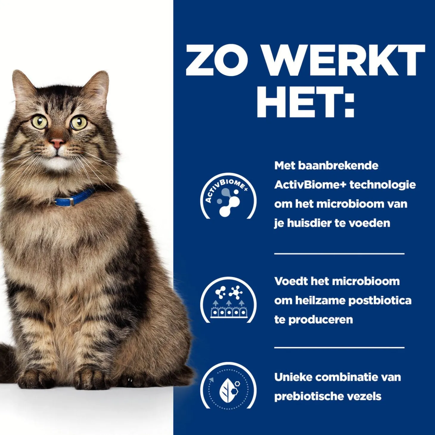 | Samenstelling | SAMENSTELLING: Vlees en dierlijke bijproducten (kip 21%), bijproducten van plantaardige oorsprong, granen, plantaardige eiwitextracten, eieren en eibijproducten, vis en visbijproducten, diverse suikers, fruit, mineralen, zaden, oliën en vetten. Goed verteerbare ingrediënten: Kip, varken, maïszetmeel, tapiocazetmeel, tarwegluten, eipoeder, zalm, rijstebloem, tarwebloem, diverse suikers, eiwithydrolysaat, gerstemeel, visolie, maïsdextrine. ActivBiome+ prebiotische mix (2,5%): Gemalen pecannotenschil, lijnzaad, gedroogde bietenpulp, gedroogde citruspulp, gedroogde veenbessen. |