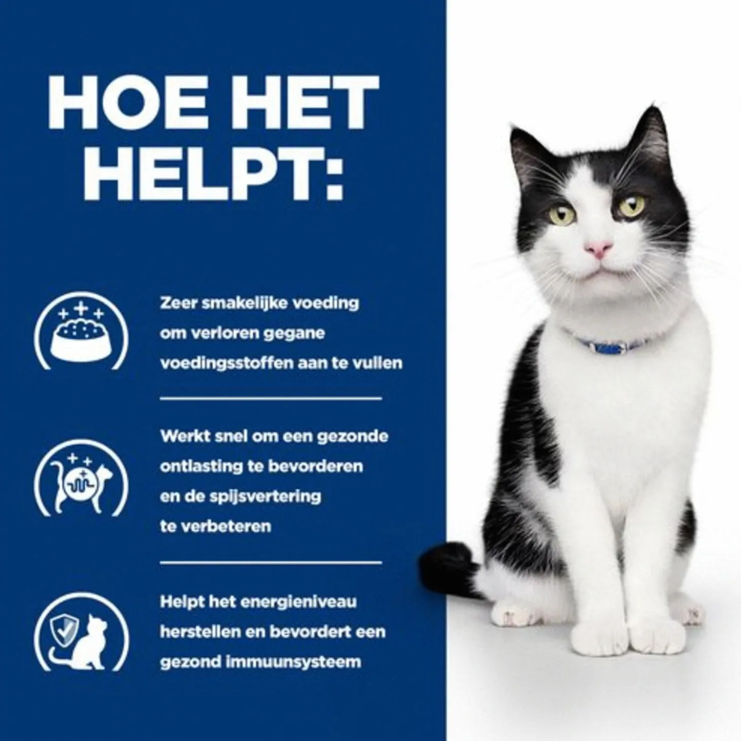 Deze complete voeding kan worden gebruikt ter vermindering van acute intestinale absorptiestoornissen, als compensatie voor een slechte spijsvertering en bij exocriene pancreasinsufficiëntie. Het natvoer is geschikt voor volwassen katten. De voeding heeft een verhoogd elektrolytengehalte, goed verteerbare ingrediënten en een laag vetgehalte.