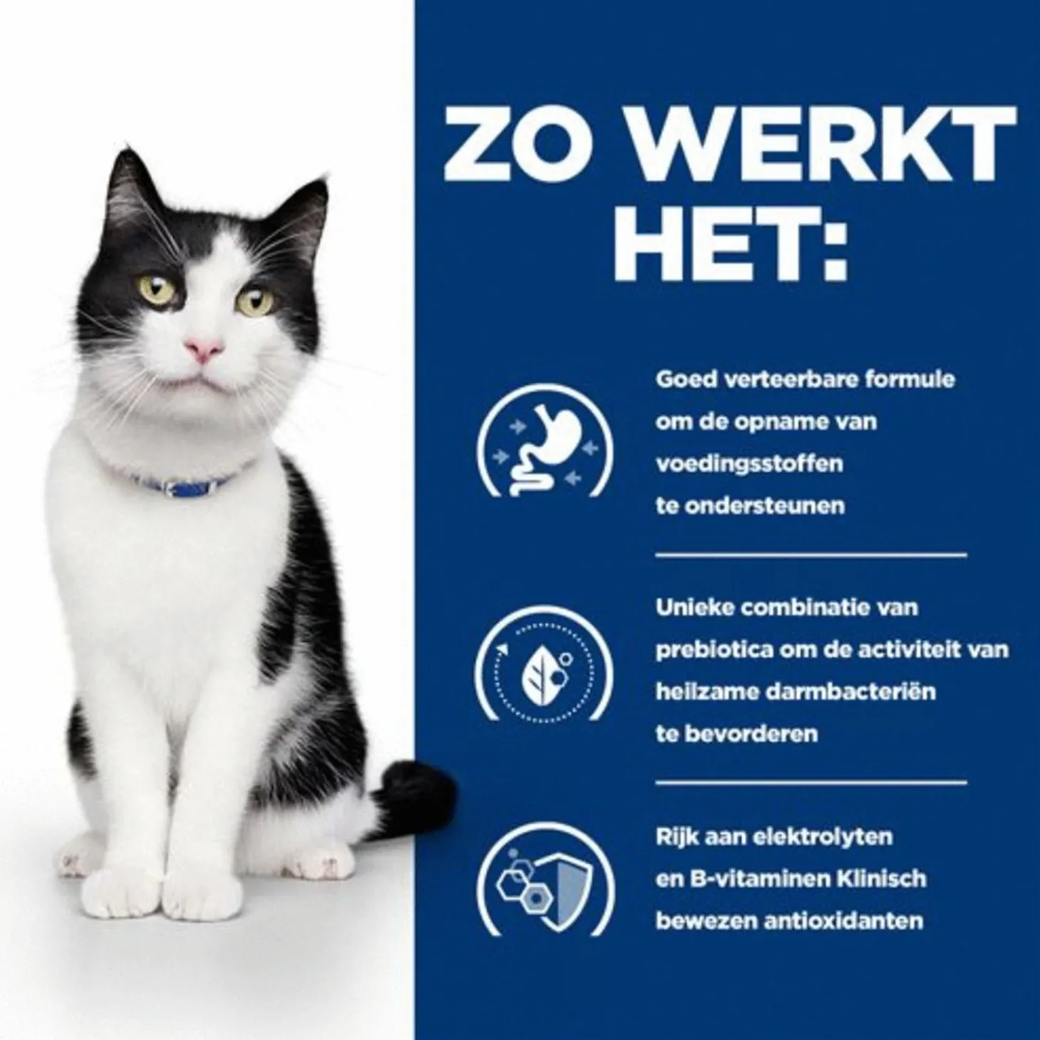 Deze complete voeding kan worden gebruikt ter vermindering van acute intestinale absorptiestoornissen, als compensatie voor een slechte spijsvertering en bij exocriene pancreasinsufficiëntie. Het natvoer is geschikt voor volwassen katten. De voeding heeft een verhoogd elektrolytengehalte, goed verteerbare ingrediënten en een laag vetgehalte.