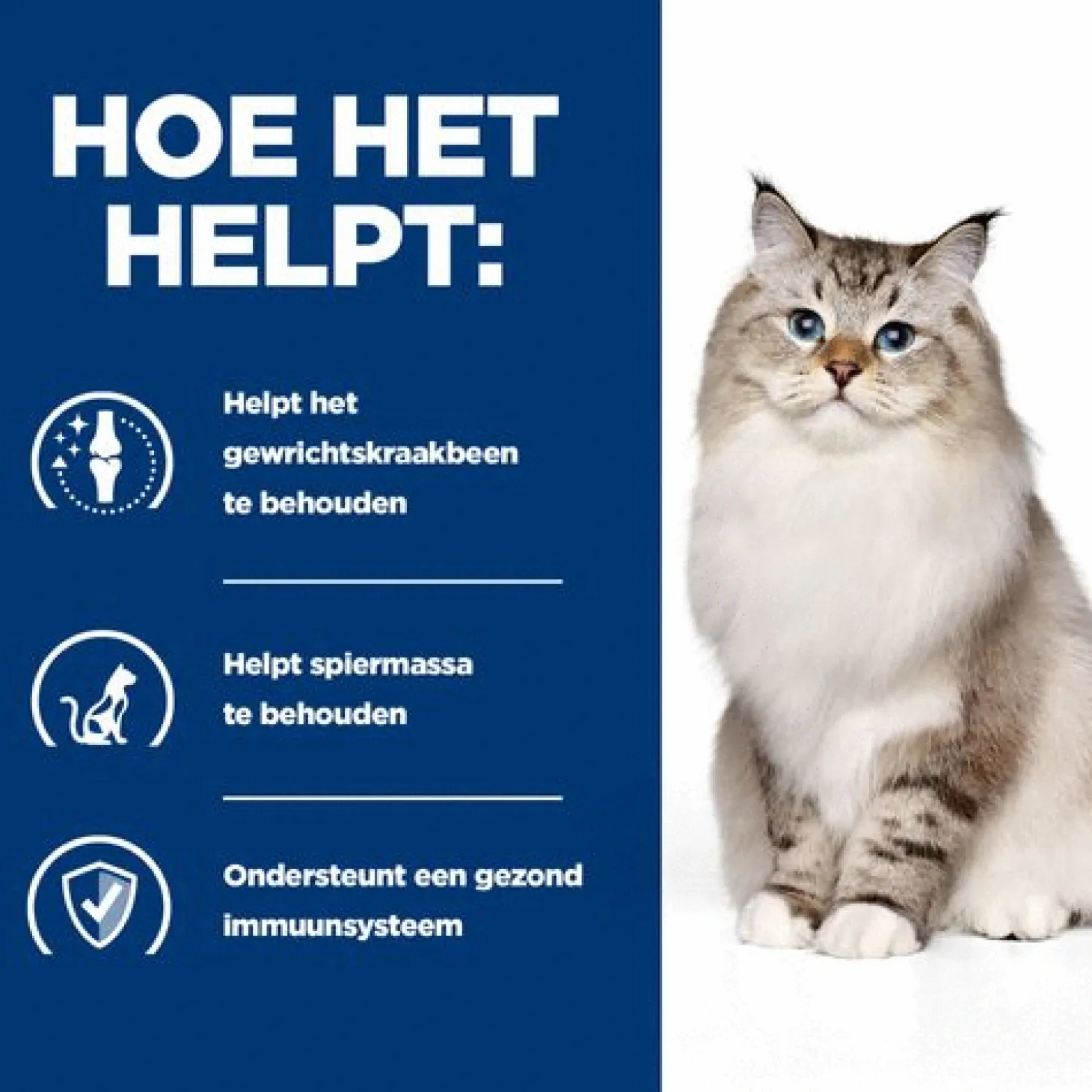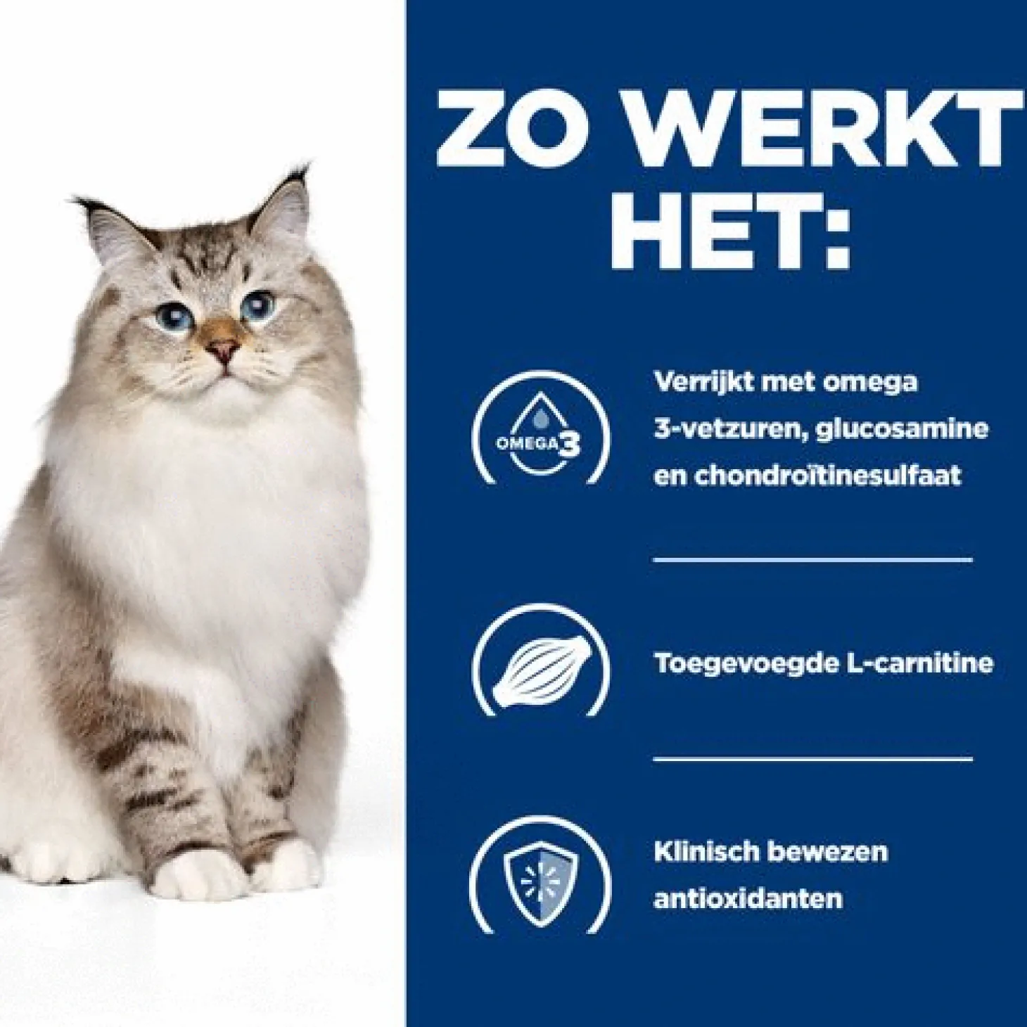 Hill’s Prescription Diet j/d is klinisch bewezen dieetvoeding voor katten met mobiliteitsproblemen. Het is klinisch bewezen dat het katten helpt om in 28 dagen actiever te zijn. Hill’s Prescription Diet j/d droog kattenvoer is een complete en uitgebalanceerde voeding die alle voedingsstoffen bevat die katten nodig hebben.