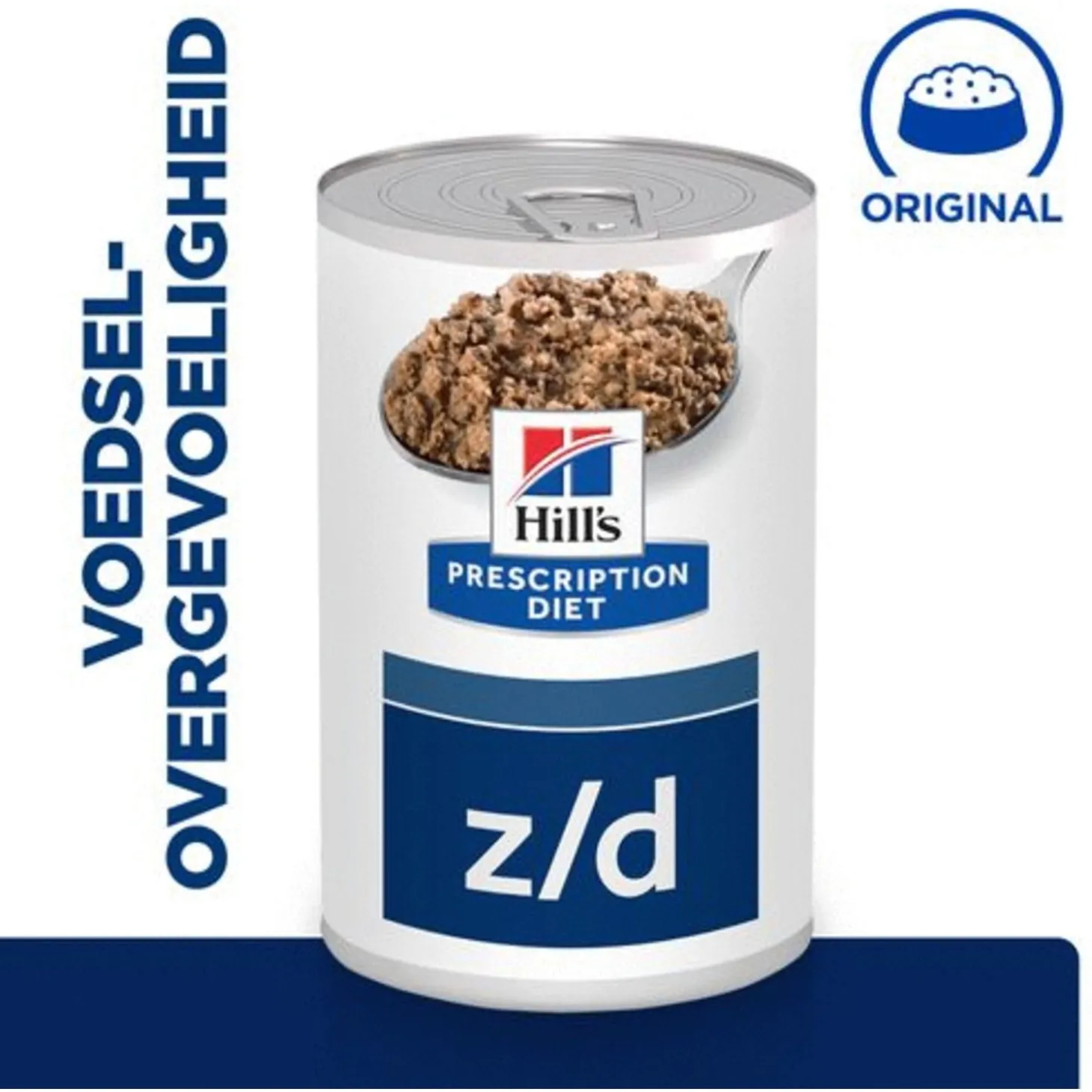Hill’s Prescription Diet z/d Food Sensitivities bevat een blik van 370 g.