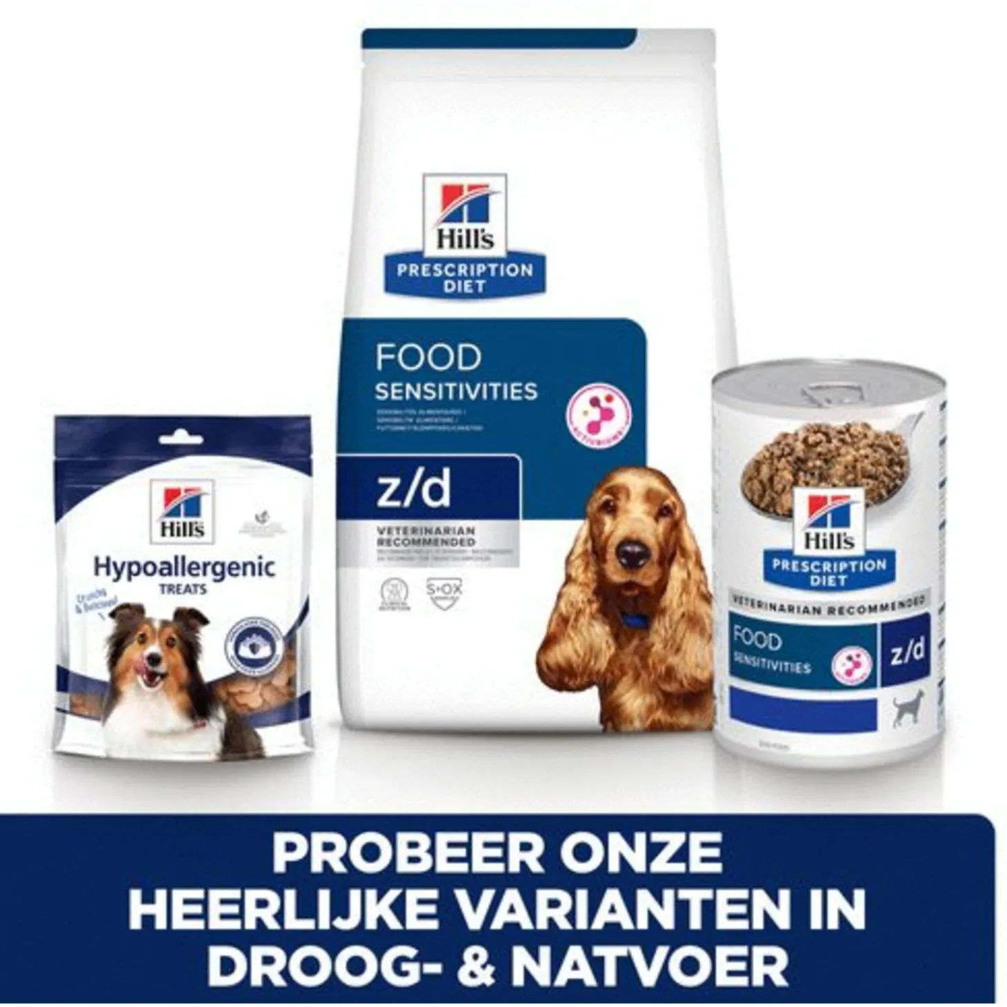 Problemen met het huid en darmen van de hond kunnen erg vervelend zijn. Gelukkig is er Hill’s Prescription Diet z/d Food Sensitivities hondenvoer. Een wetenschappelijk samengestelde voeding met kip dat bewezen huid en maagdarmverschijnselen, veroorzaakt door voedselallergieën, helpt te verminderen.