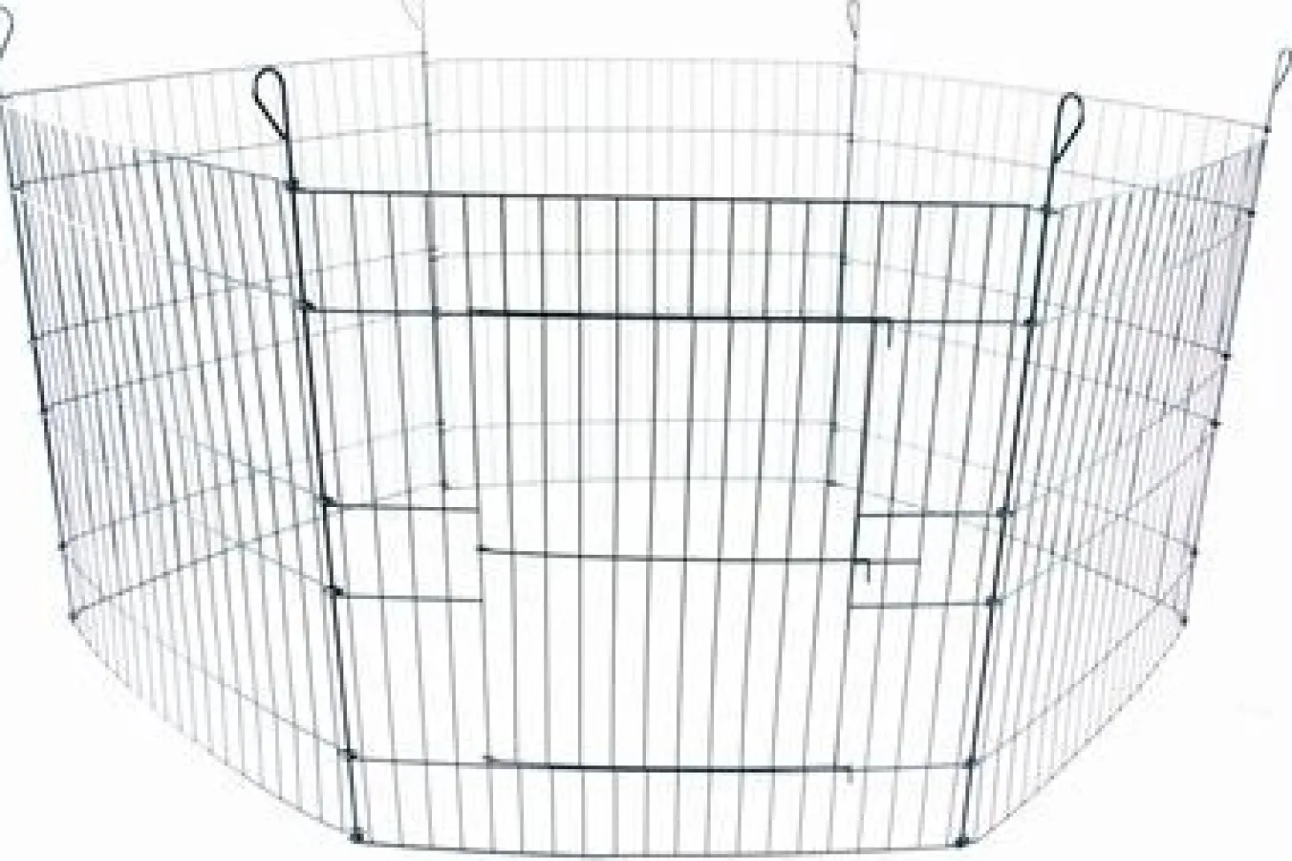 De konijnenren is een eenvoudige en praktische ren voor binnen of buiten, zodat je konijnen de ruimte hebben om rond te lopen zonder dat ze ontsnappen. Als je de ren groter wilt maken kan je meerdere rennen combineren. Dankzij het deurtje kan je eenvoudig je konijn in en uit de ren tillen. De konijnenren heeft de volgende afmeting: