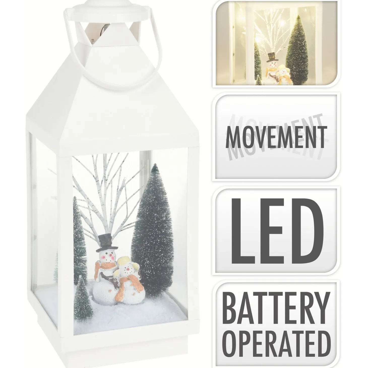 Bij de feestdagen denk je al gauw aan sneeuw. De Lantaarn met Kerstscène van Homestyle is een vrolijk tafereel van twee sneeuwpoppen met besneeuwde dennenbomen en een lichtgevende berk, verwerkt in een witte lantaarn. Dankzij de ledlampjes is deze lantaarn extra leuk voor de donkere avonden.