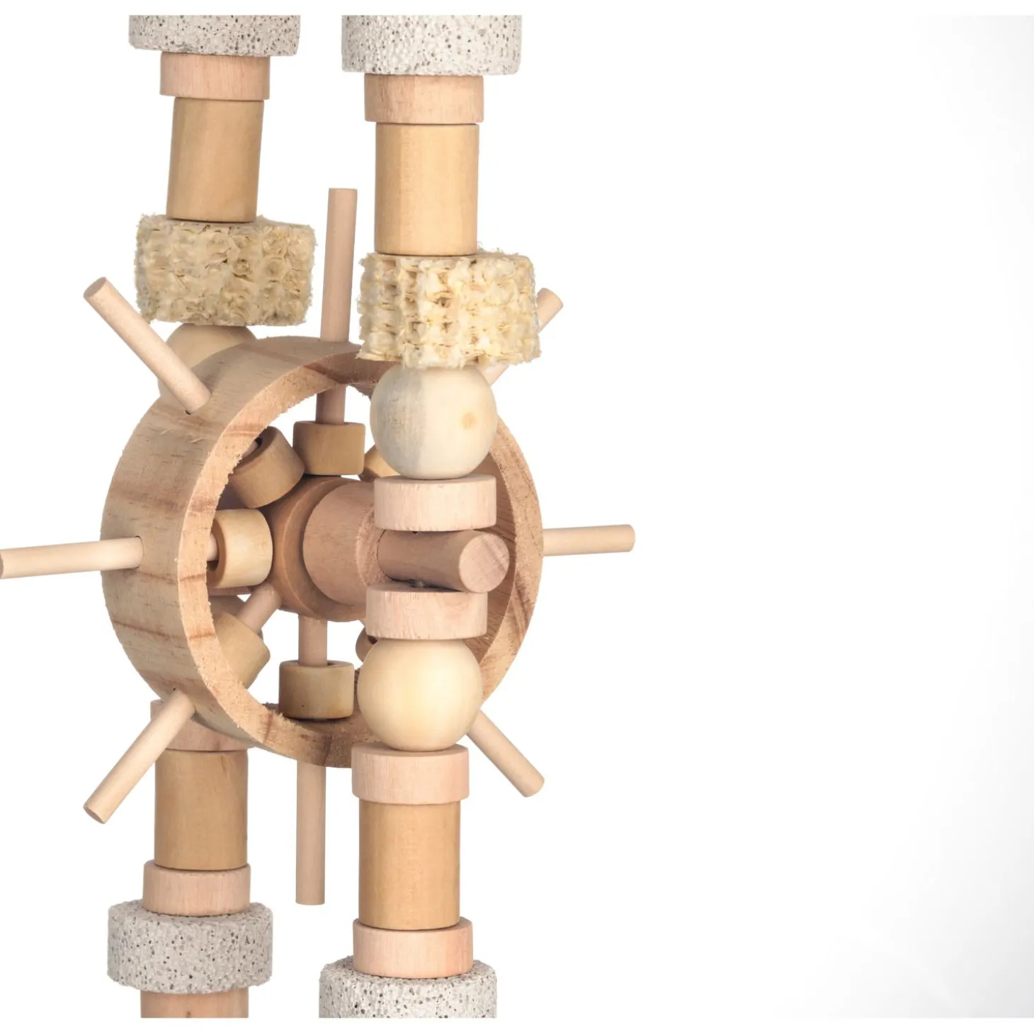 Wie zijn vogel wilt verwennen met een leuk speeltje, is bij dit vogelspeelgoed van Homestyle aan het goede adres! Vogels houden van slopen, het zit in hun aard. Naast dat het knagen op dingen tegen verveling werkt, slijpt het ook gelijk hun snavel. Op dit speeltje kunnen ze dan ook gemakkelijk hun knaagbehoeftes kwijt.