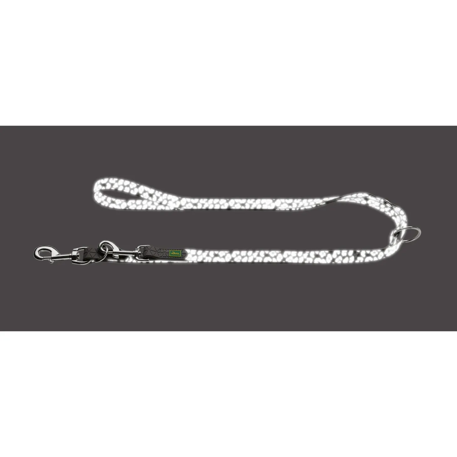 Dankzij de panterprint ziet de lijn er stijlvol uit. Deze pantervlekken weerspiegelen licht – zoals koplampen van auto’s of fietsen – en hebben een licht glow-in-the-dark effect. Zo is je hond goed zichtbaar voor andere verkeersdeelnemers; ook bij slecht zicht of van een grotere afstand.