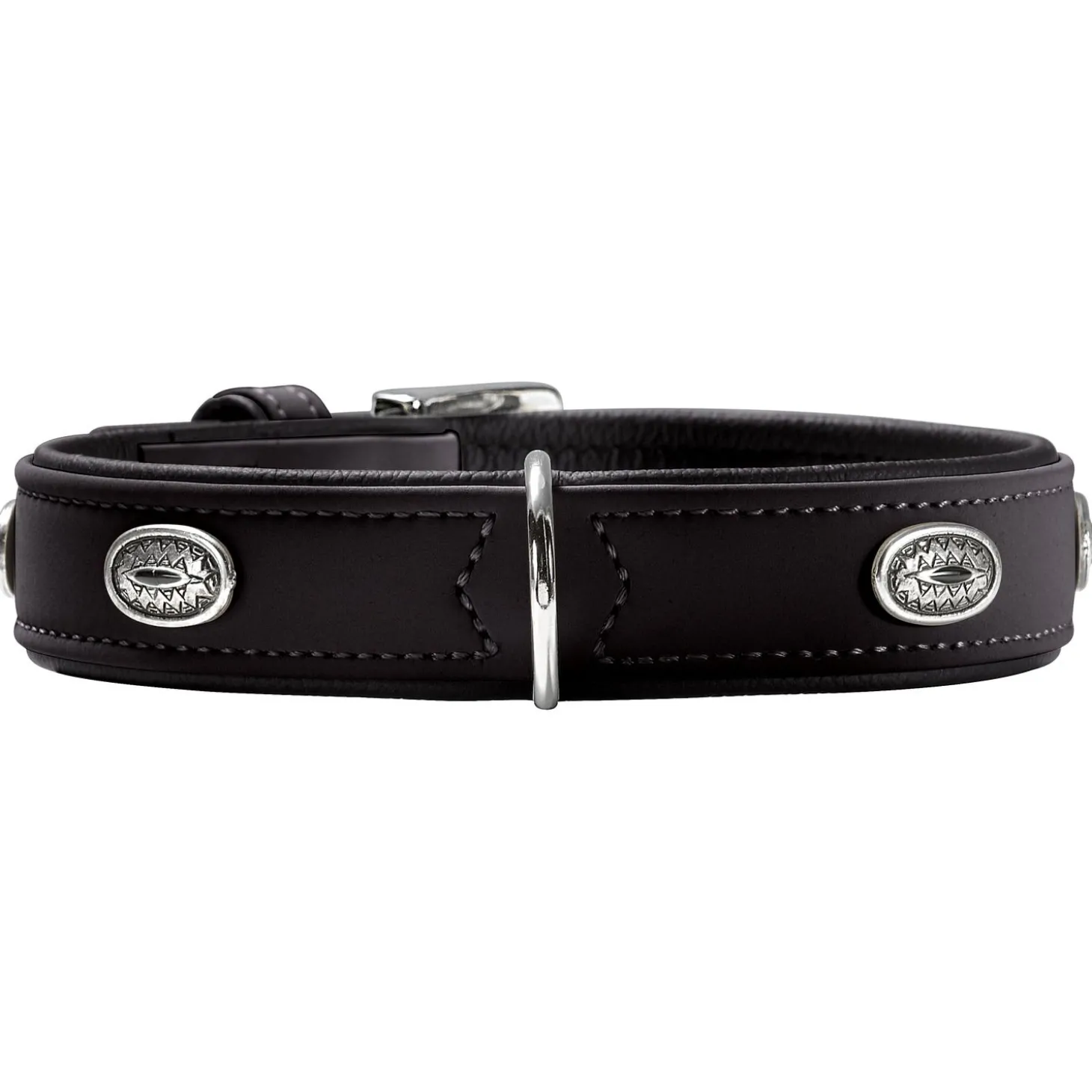 De Halsband Softie Stone van Hunter is een elegante halsband gemaakt van duurzaam kunstleer. Dankzij de medaillonvormige, decoratieve elementen is de Softie Stone een tijdloze en chique halsband. Geproduceerd in Duitsland.