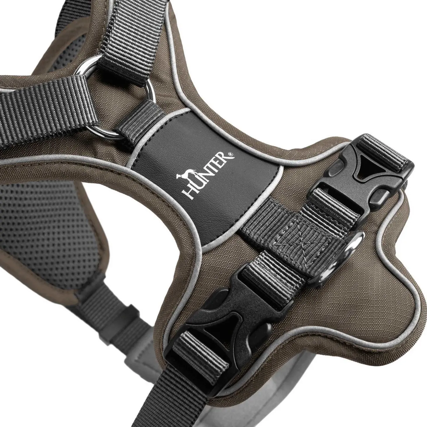 Voor extra zichtbaarheid in het donker is het Harnas Divo voorzien van reflecterende 3M Scotchlite, een reflecterend stiksel verwerkt in het tuig.