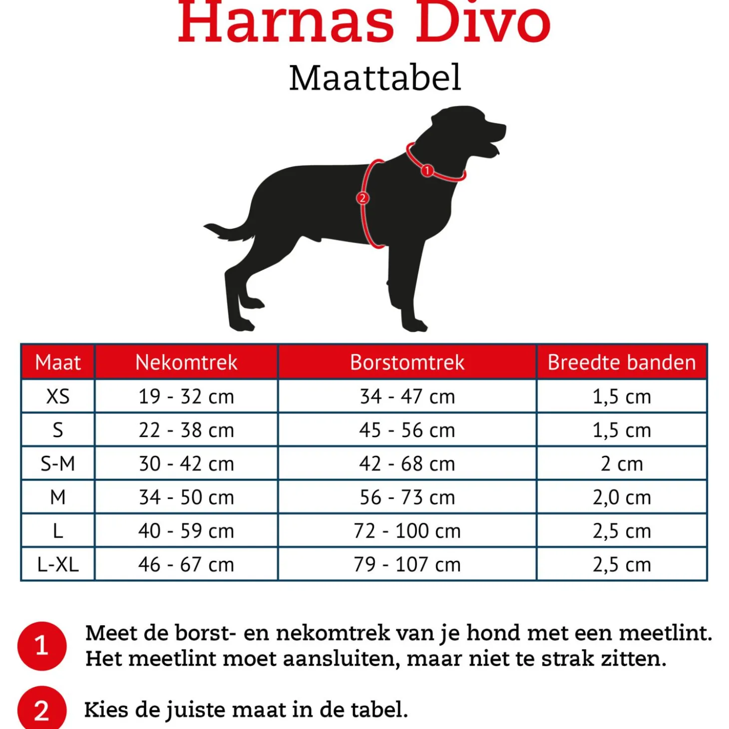 Het Harnas Divo is verkrijgbaar in verschillende kleuren en maten.