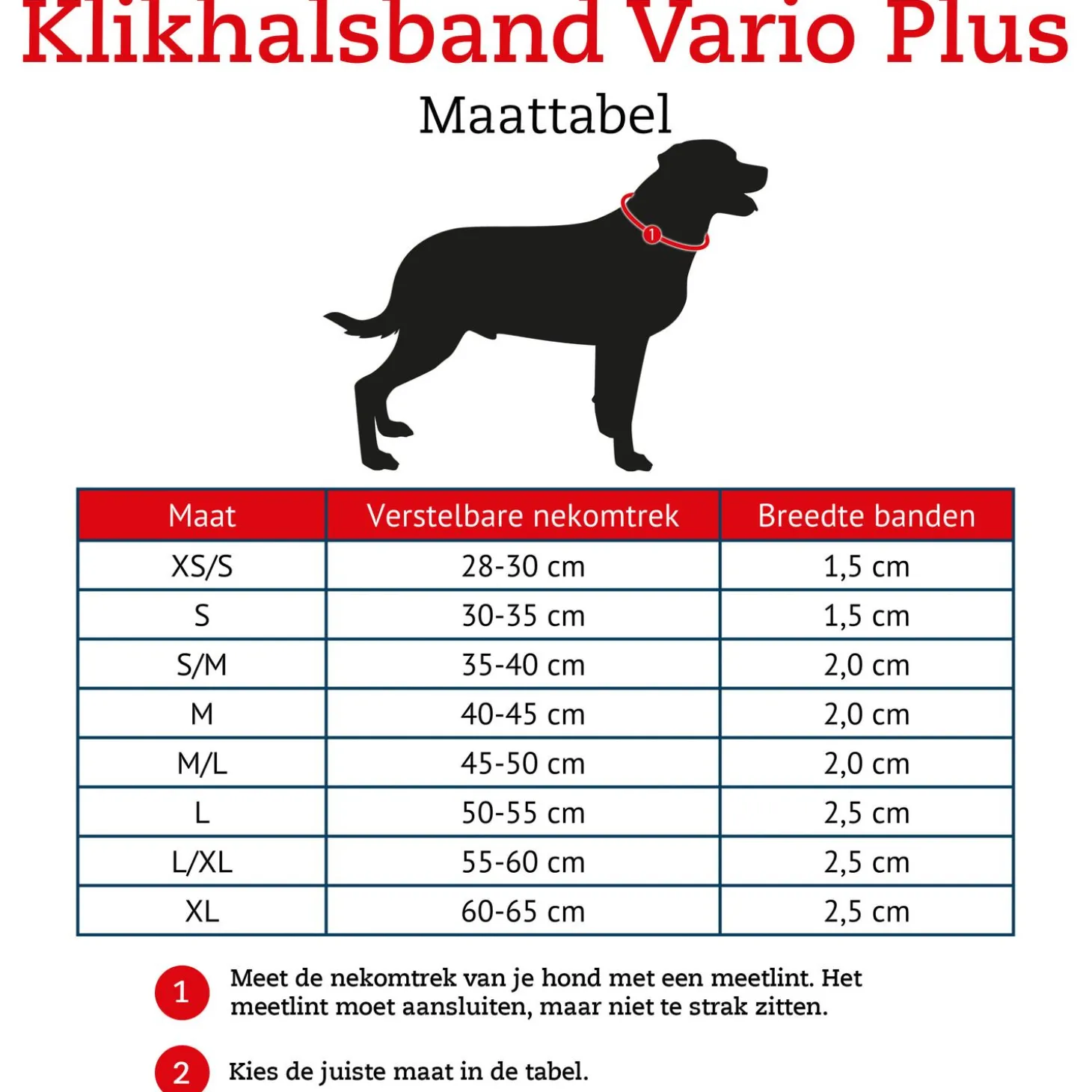De Klikhalsband Vario Plus is verkrijgbaar in verschillende kleuren en maten.