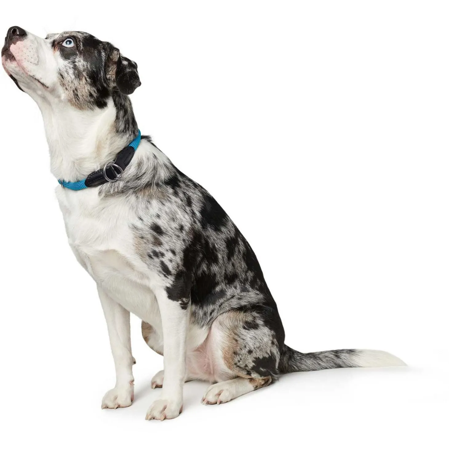 Je meet de juiste omtrek met een flexibel meetlint rond het midden van de nek van je hond. Het meetlint moet goed aansluiten, maar moet niet te strak zitten. Zorg ervoor dat er ongeveer een vingerbreedte tussen het meetlint en de nek zit. Kies vervolgens een passende nekomtrek. Valt de omtrek net aan het eind van een maat? Kies dan voor de zekerheid een maatje groter (al helemaal voor honden in de groei).