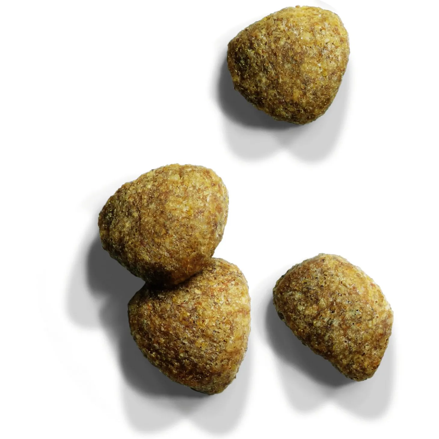 | Samenstelling | gedroogde kip en kalkoen 36% (kip 22%, een natuurlijke bron van taurine), maïs, maïsgries,sorghum, verse kip (4.1%), gerst, gedroogde bietenpulp (2.5%), varkensvet, kippenjus, gedroogde biergist, fructo-oligosachariden (0.69%), kaliumchloride, visolie. |