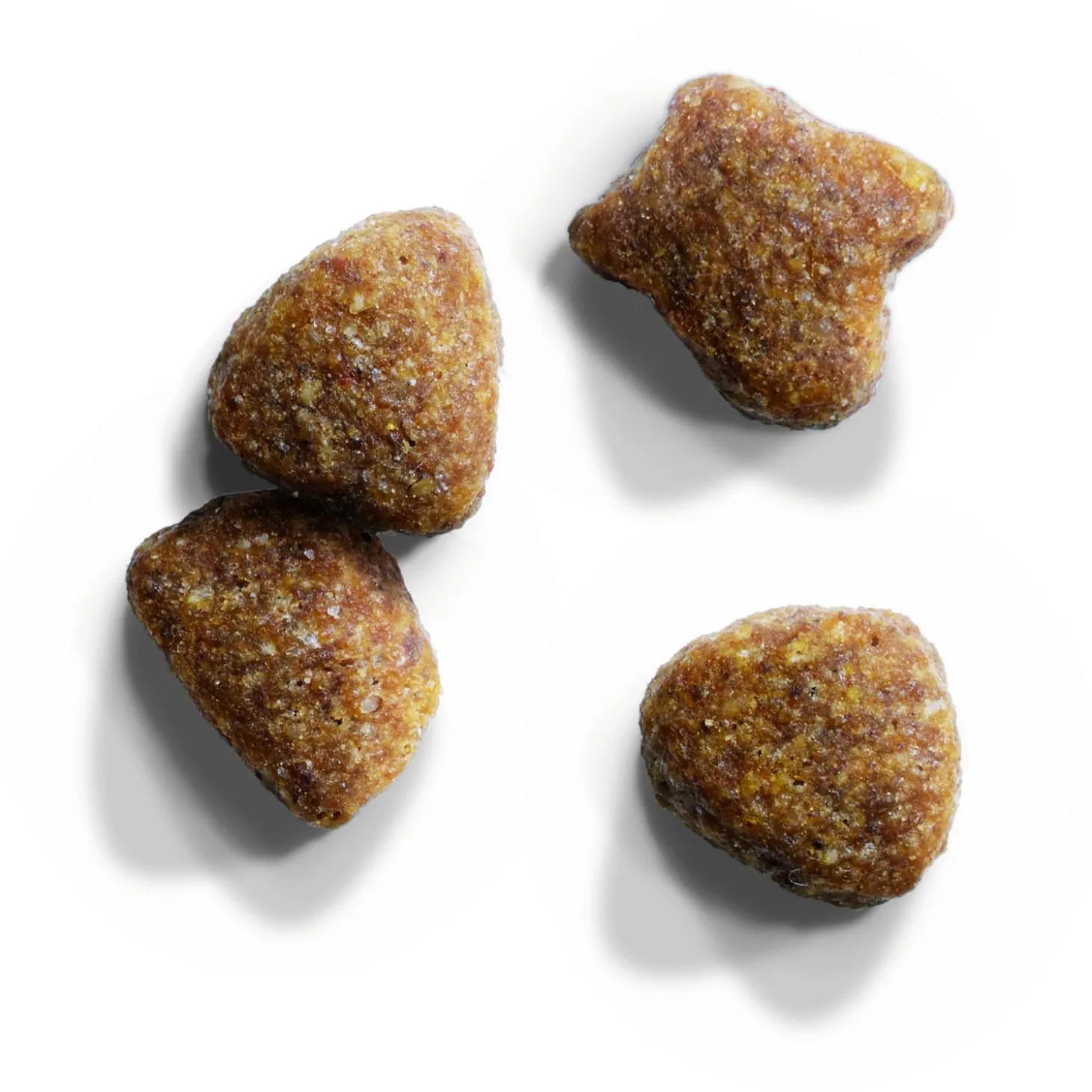 | Analyse | Gedroogde kip en kalkoen: 38% (kip 23%, een natuurlijke bron van taurine), maïs, tarwe, dierlijk vet, rijst, zalm (4,1%), sorghum, gedroogde bietenpulp (1,9%), gehydroliseerde dierlijke eiwitten, fructo-oligosacchariden (0,66%), kaliumchloride, biergist, gedroogde hele eieren, calciumcarbonaat. Analytische bestanddelen*: Eiwit: 33,0%, Vetgehalte: 15,0%, Omega-6 vetzuren: 2,43%, Omega-3 vetzuren: 0,33%, Ruwe as: 7,20%, Ruwe celstof: 1,80%, Calcium: 1,05%, Fosfor: 0,95%, Magnesium: 0,10%. |