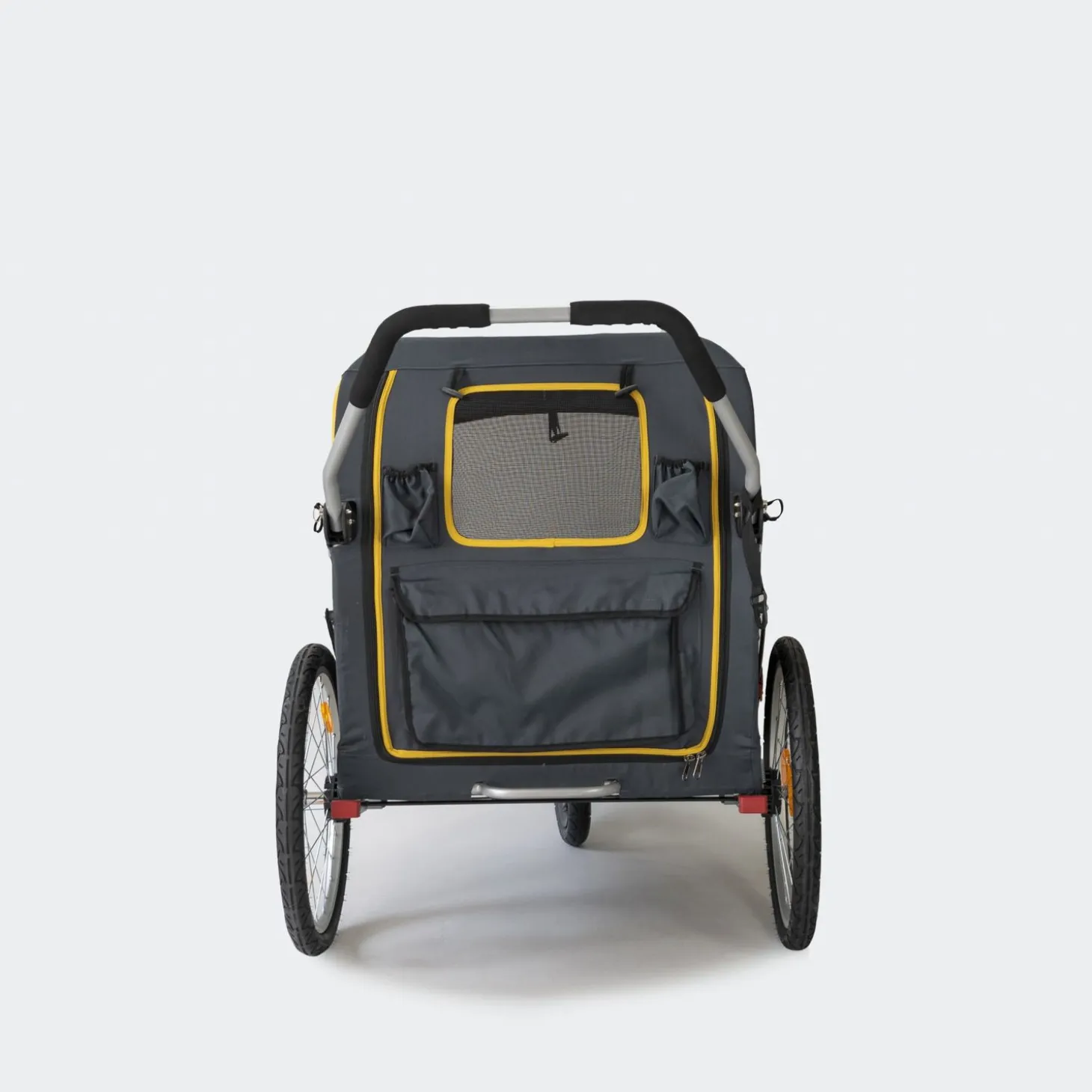 Hoewel honden het leuk vinden om mee te rennen naast de fiets, is dit niet voor elke hond (meer) mogelijk. Ook voor lange afstanden is het niet wenselijk dat je hond de hele weg mee rent. Door gebruik te maken van de InnoPet Hercules van InnoPet kan je je hond altijd meenemen. De InnoPet Hercules is een fietsaanhanger en buggy in 1. Hij heeft een stevige constructie en is geschikt voor honden tot 50 kg.