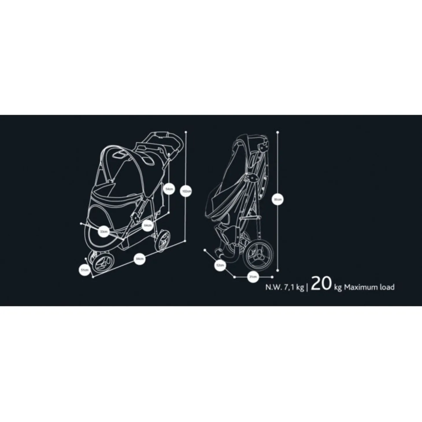 De Buggy Allure is eenvoudig in elkaar te zetten met een 1-hands inklapsysteem. Zo is de buggy makkelijk mee te nemen in de auto. In de buggy ligt een matrasje (wasbaar op 30 graden Celsius) waar je hond op kan zitten en liggen. Voor het gemak van het baasje bevat de buggy een handig accessoireplateau met 2 bekerhouders, een verborgen stalen voorstang voor extra stevigheid en kan je het voorste wiel vastzetten indien gewenst.